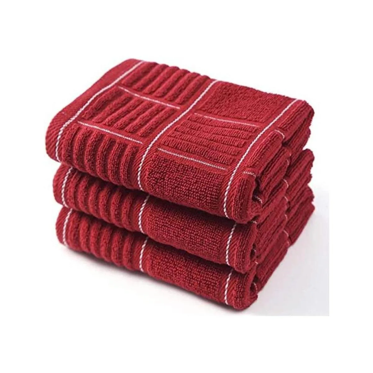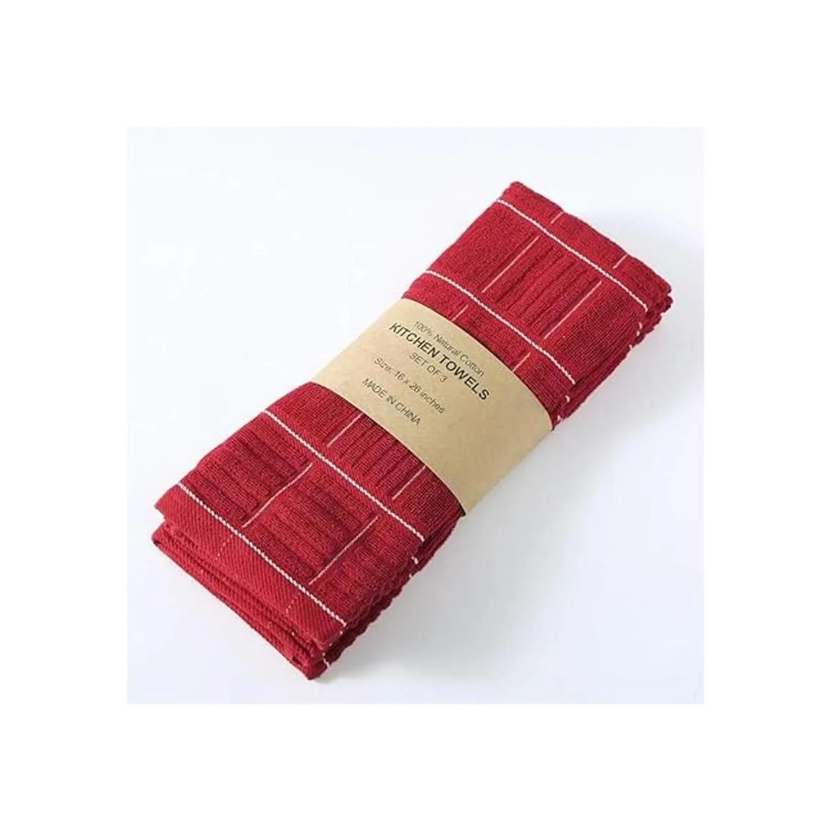 Paquete económico y fácil de almacenar: cada juego incluye 3 toallas de cocina rojas que miden 16 x 26 pulgadas, tamaño perfecto para el uso diario. Lazo para colgar para un fácil almacenamiento