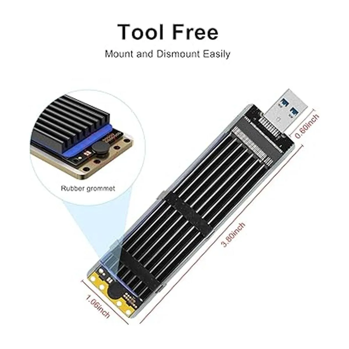 Sin herramientas: sin tornillos, sin herramientas, no necesita cable. Un pequeño enchufe de silicona se puede fijar fácilmente y no daña el PCBA. Almohadilla térmica gratis para una refrigeración rápida.