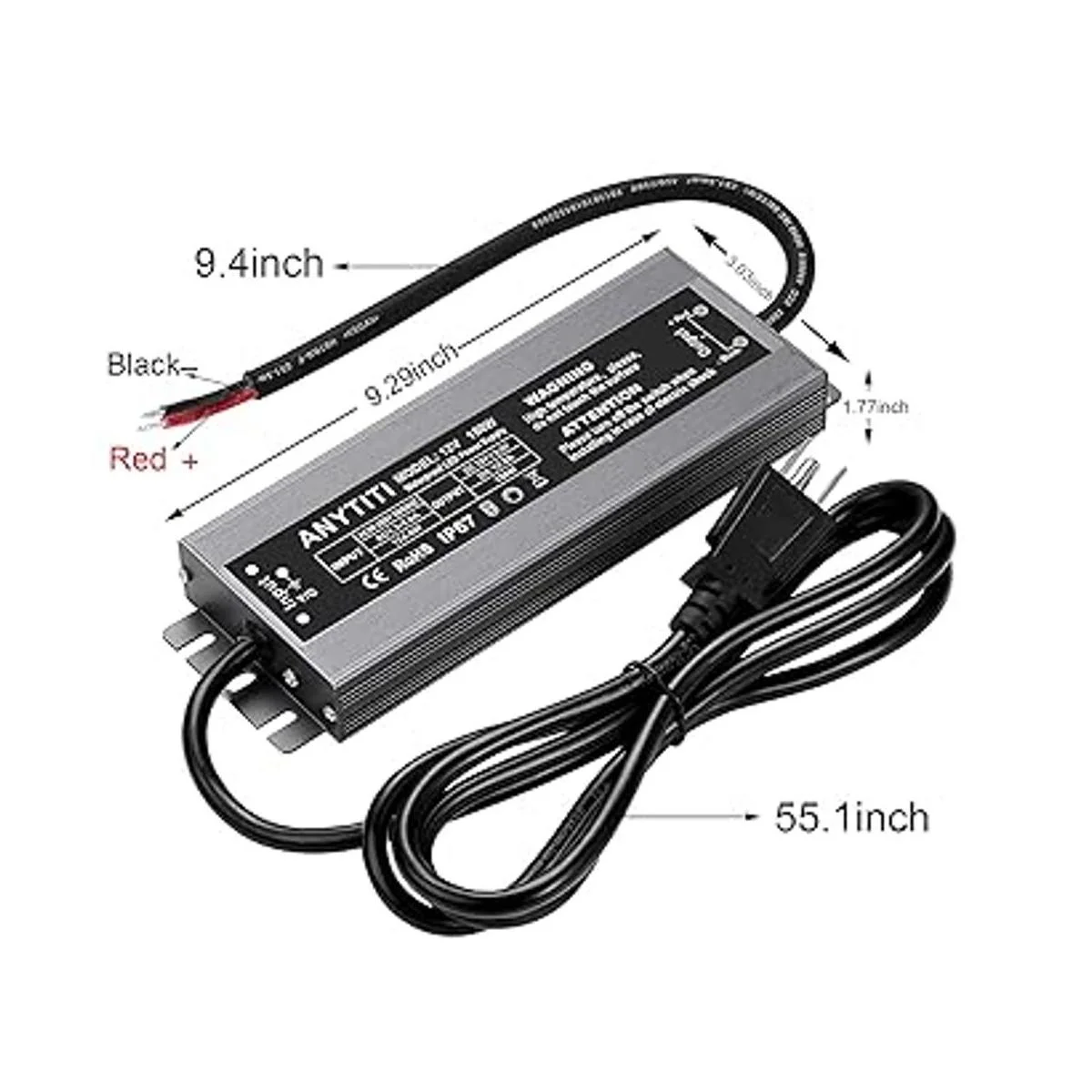 ANYTITI Controlador LED, fuente de alimentación LED IP67, salida impermeable de 150 W, CC12 V, 12.5 A, enchufe de 3 clavijas de 4.5 pies