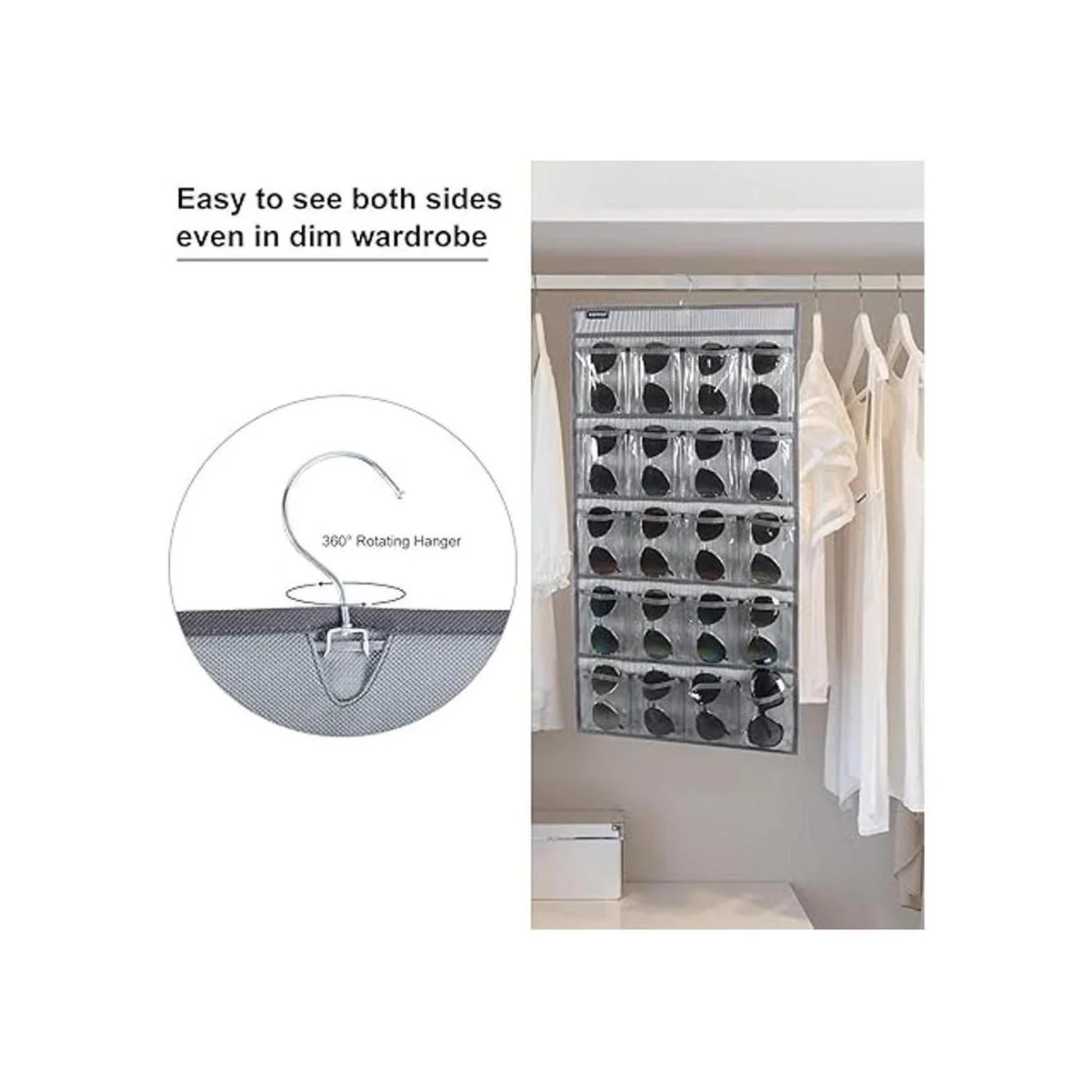 ANZORG Organizador de lentes de sol colgantes de doble cara con 40 ranuras transparentes 40 bolsillos, gris