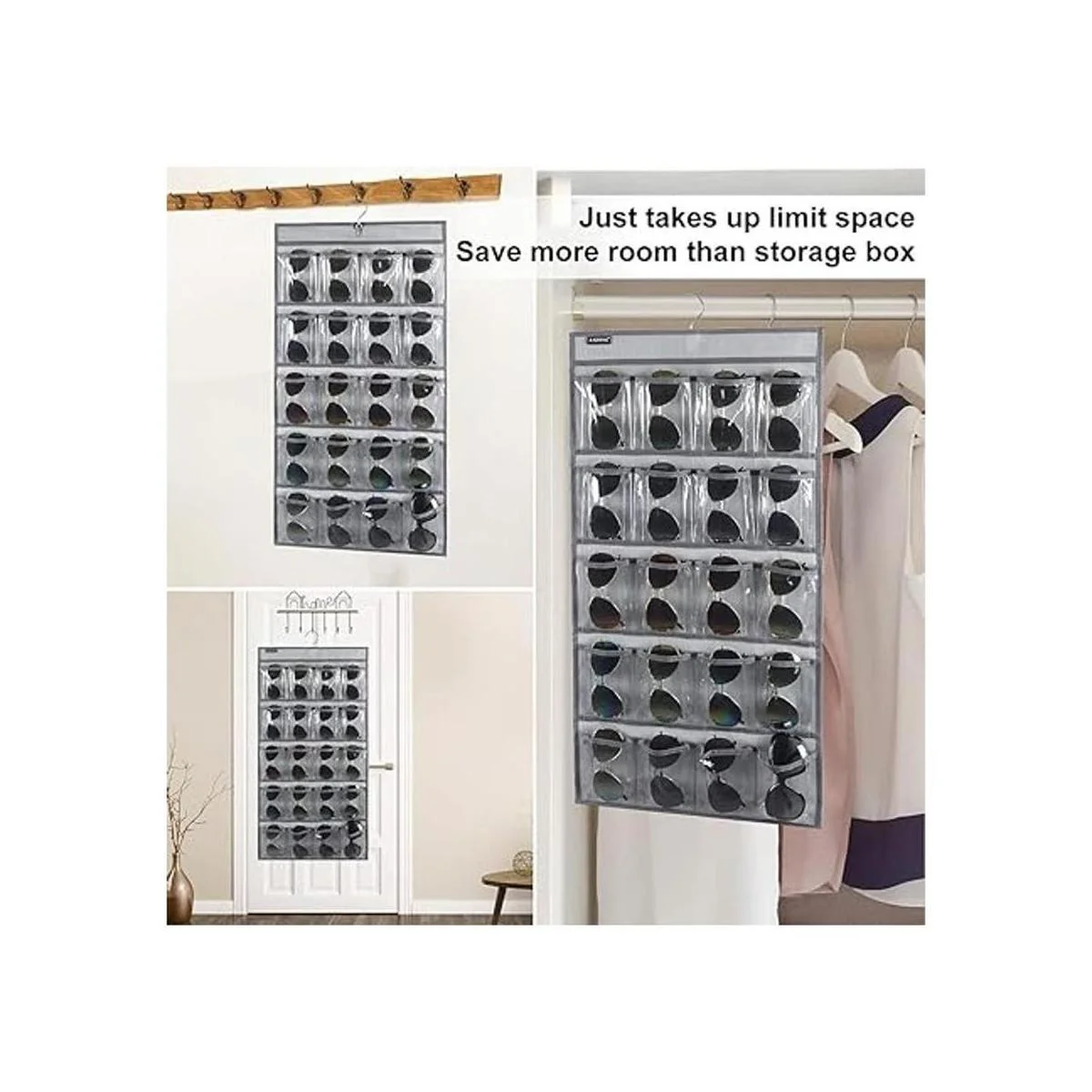 ANZORG Organizador de lentes de sol colgantes de doble cara con 40 ranuras transparentes (40 bolsillos, gris)