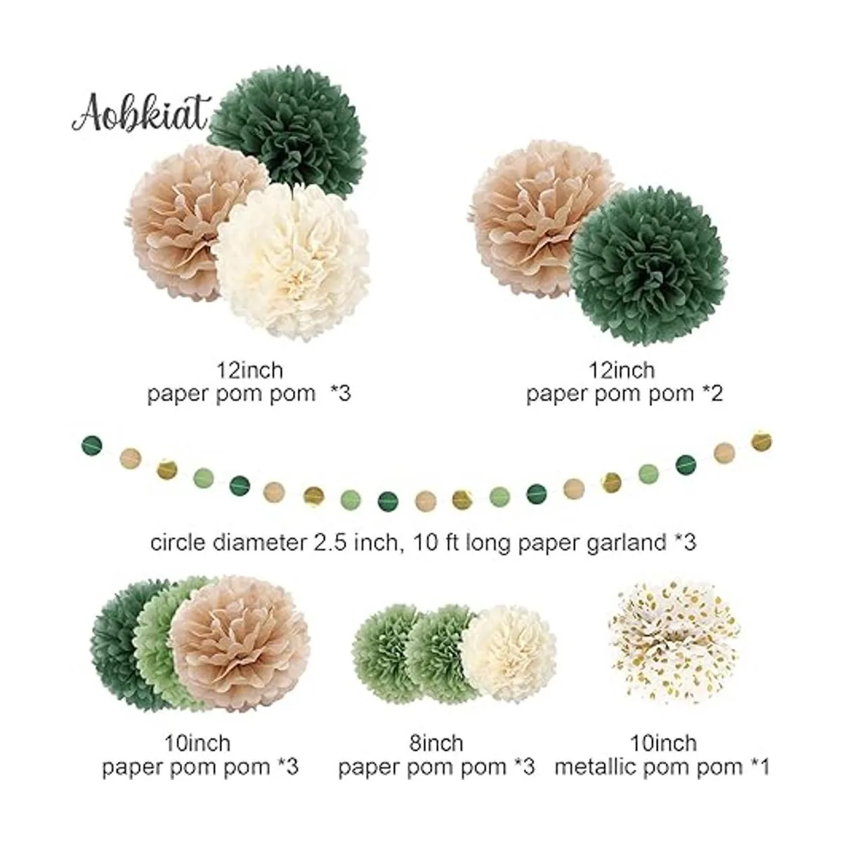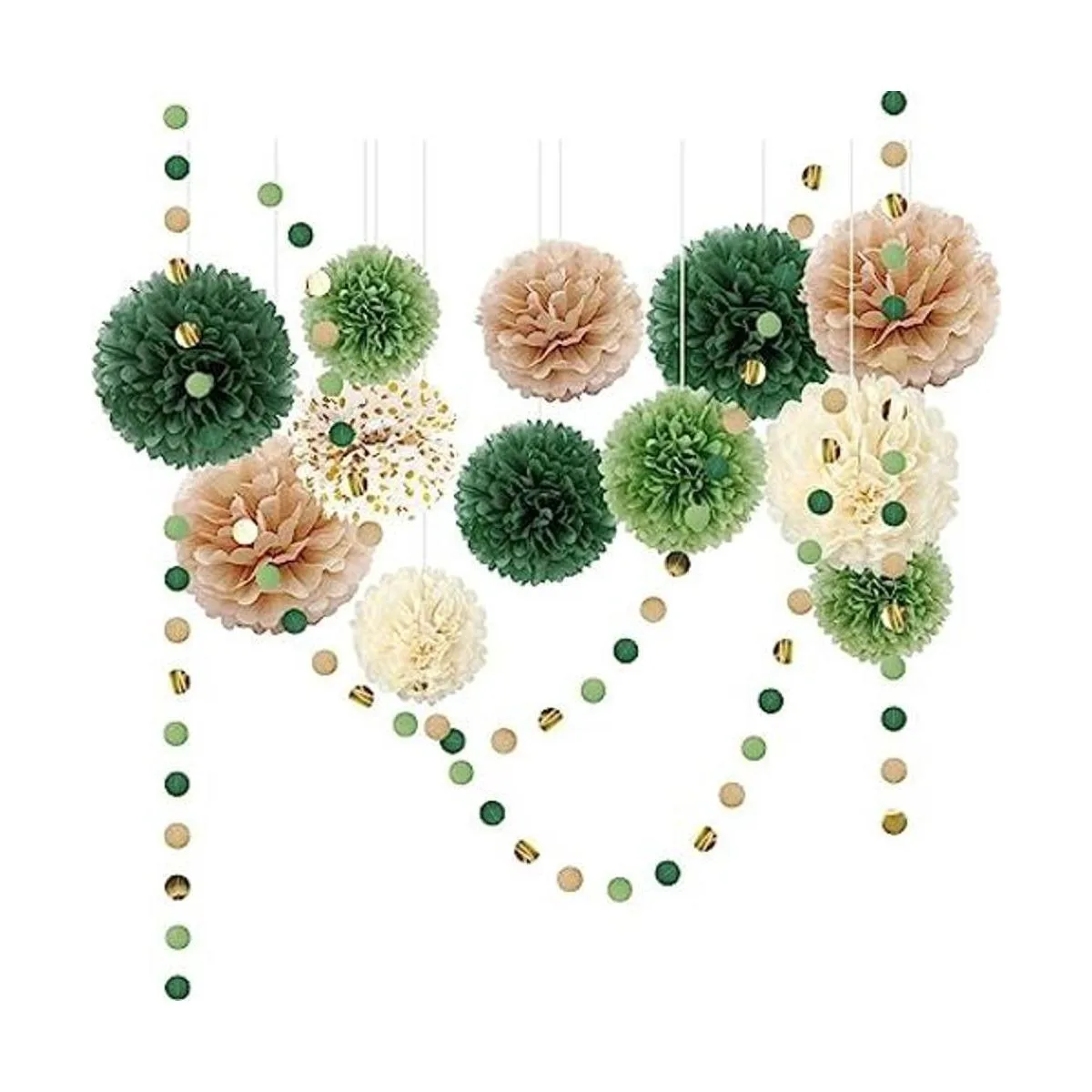 Incluido en el paquete: el kit de decoración de fiesta incluye 12 pompones de papel de seda: 5 12 pulgadas, 4 10 pulgadas y 3 8 pulgadas, 3 guirnaldas de papel de lunares, 15 en total.
