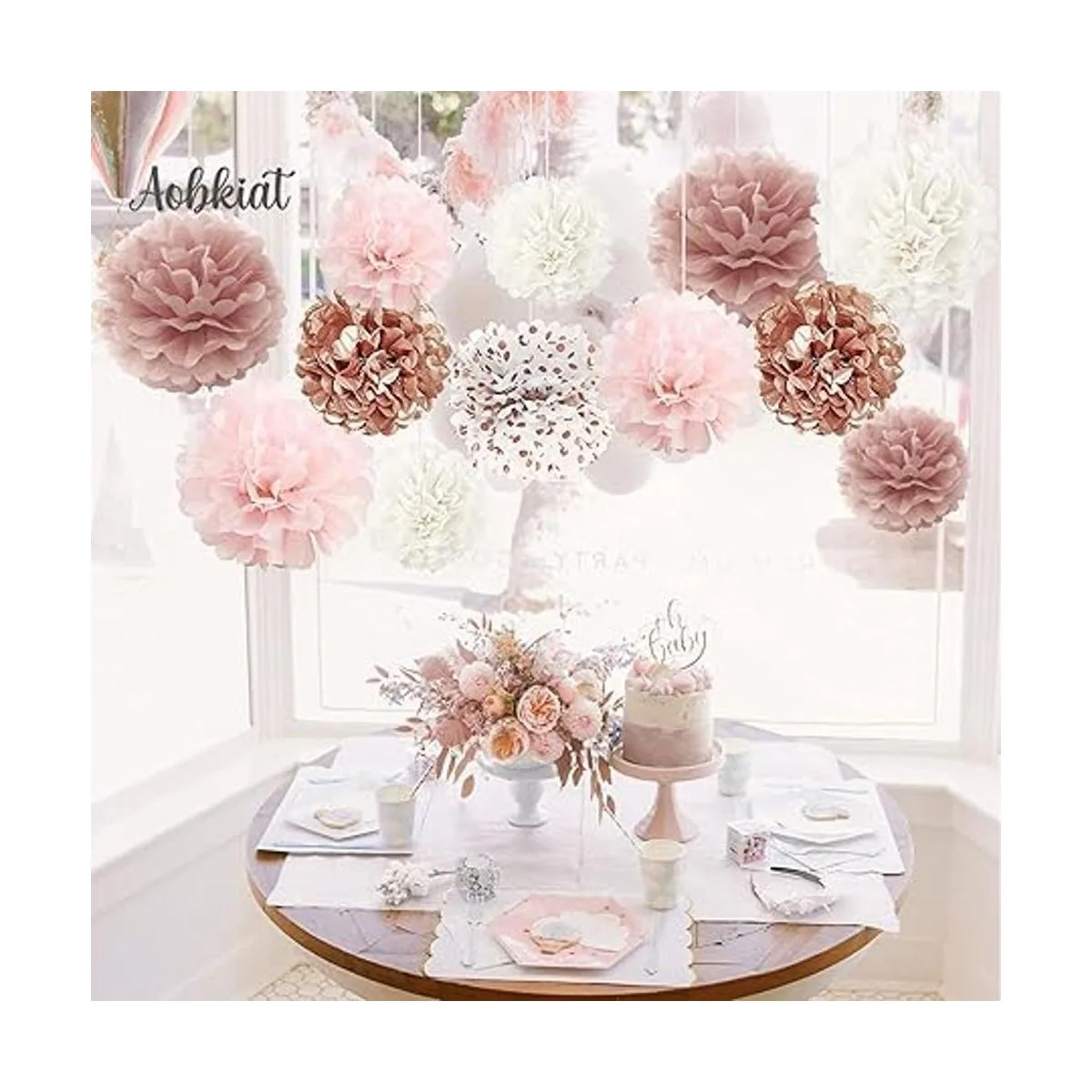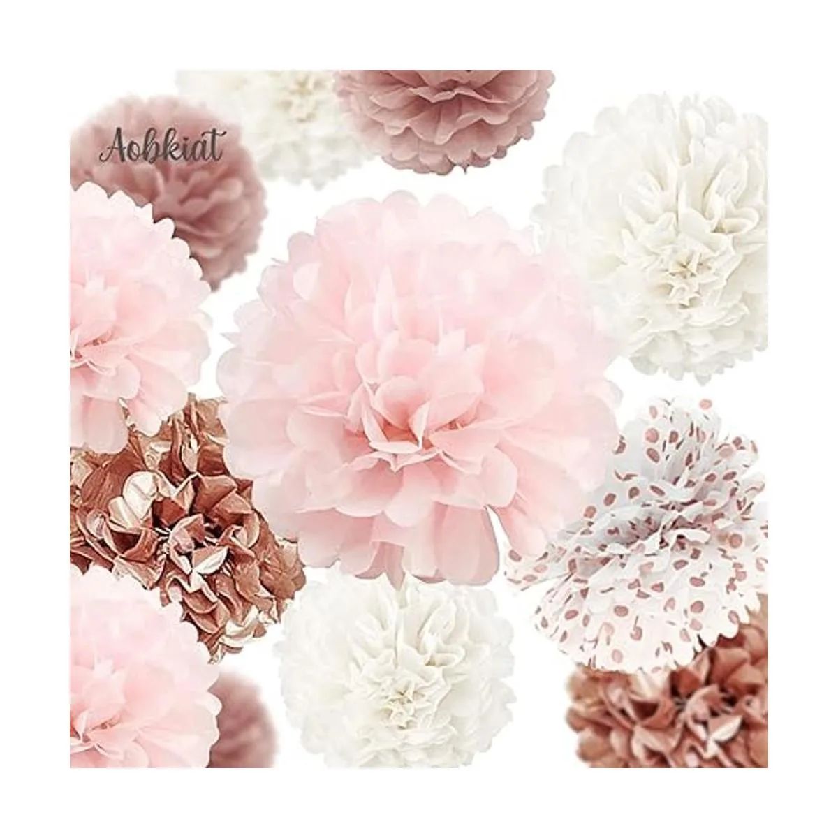 Material de alta calidad: nuestros pompones de papel de seda están hechos de papel de servilleta de seda de alta calidad y colorido que los pompones finales de papel de seda darán como resultado una bola de flores redonda perfecta. Y diseño original de AOBKIAT.