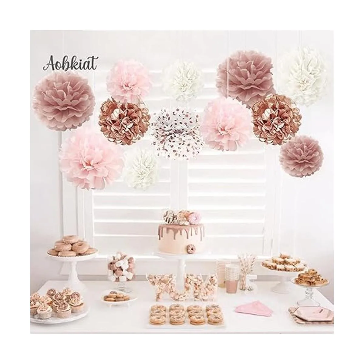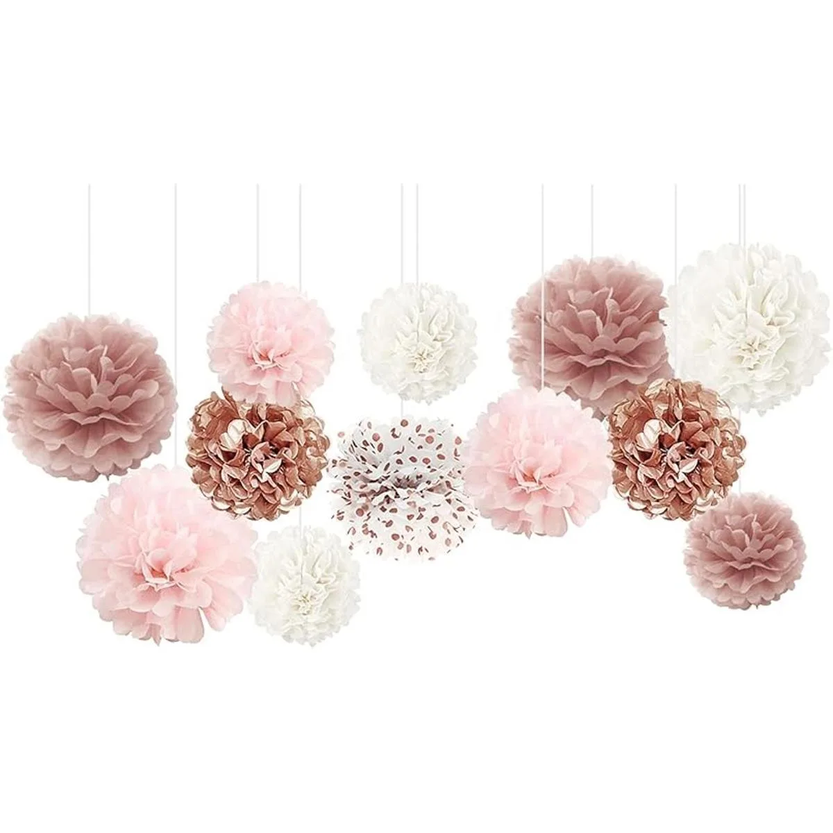 AOBKIAT Juego de pompones de papel de seda, 12 piezas de oro rosa, rosa, blanco, con flores de papel, decoración para bodas, cumpleaños, baby shower, despedida de soltera, suministros para fiestas