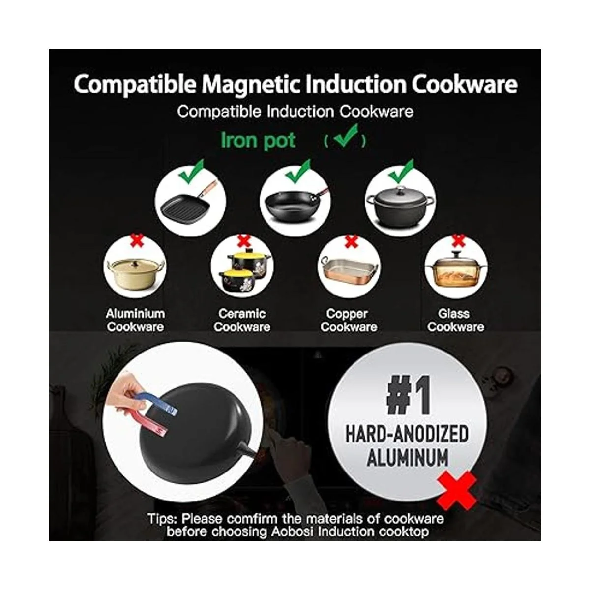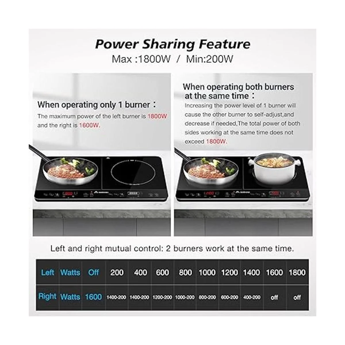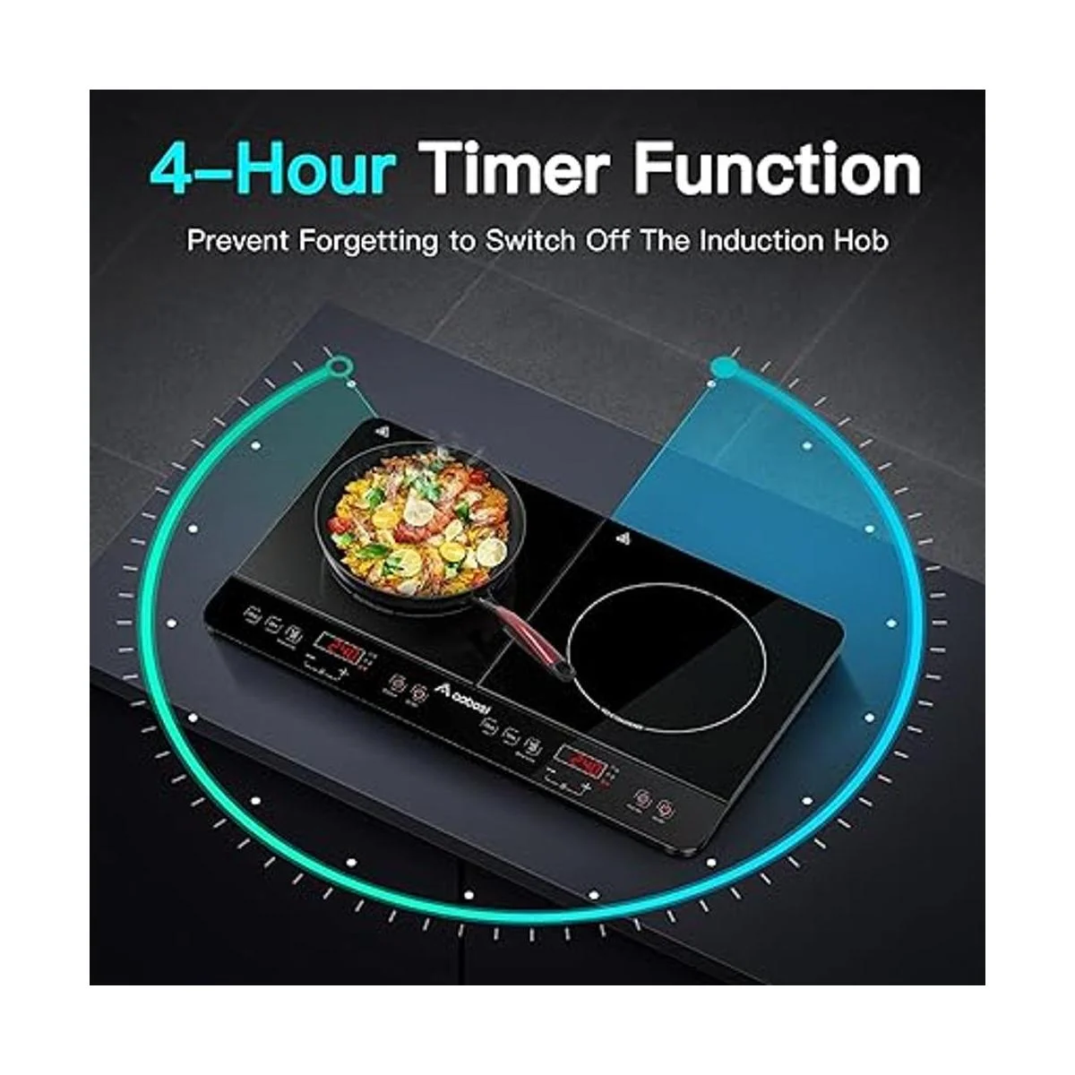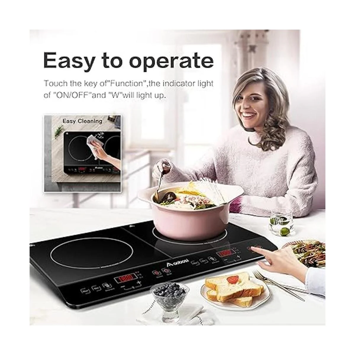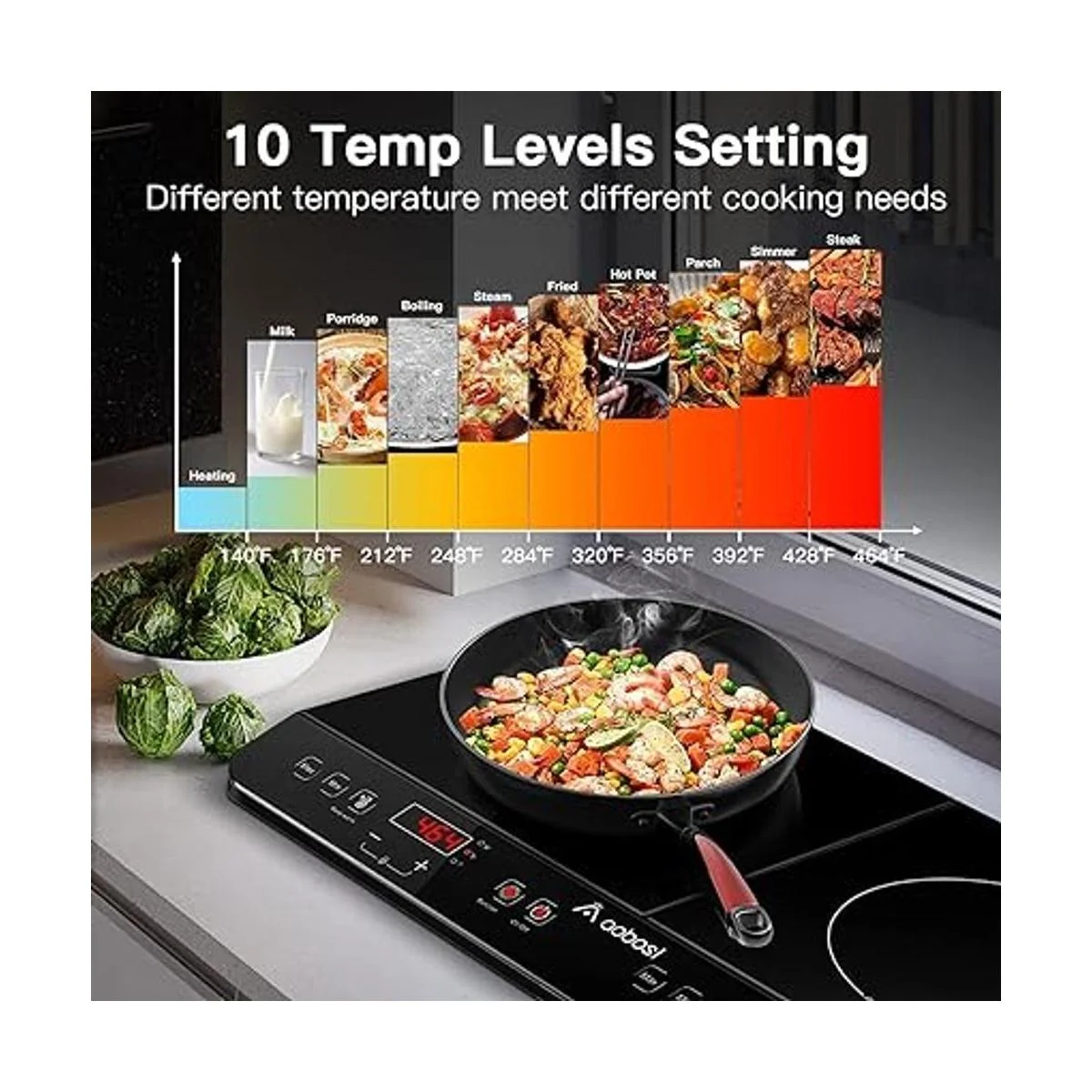 Aobosi Quemador de doble inducción con temporizador de 240 minutos, quemador de inducción de 1800 W, 2 quemadores de inducción con 10 temperaturas, 9 ajustes de potencia, cocina portátil de inducción doble con control de sensor táctil y bloqueo de seguridad infantil