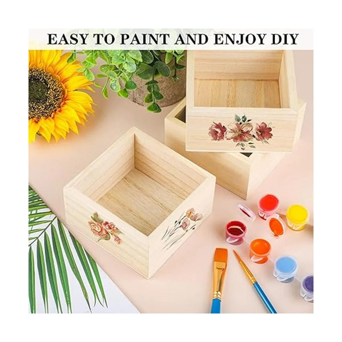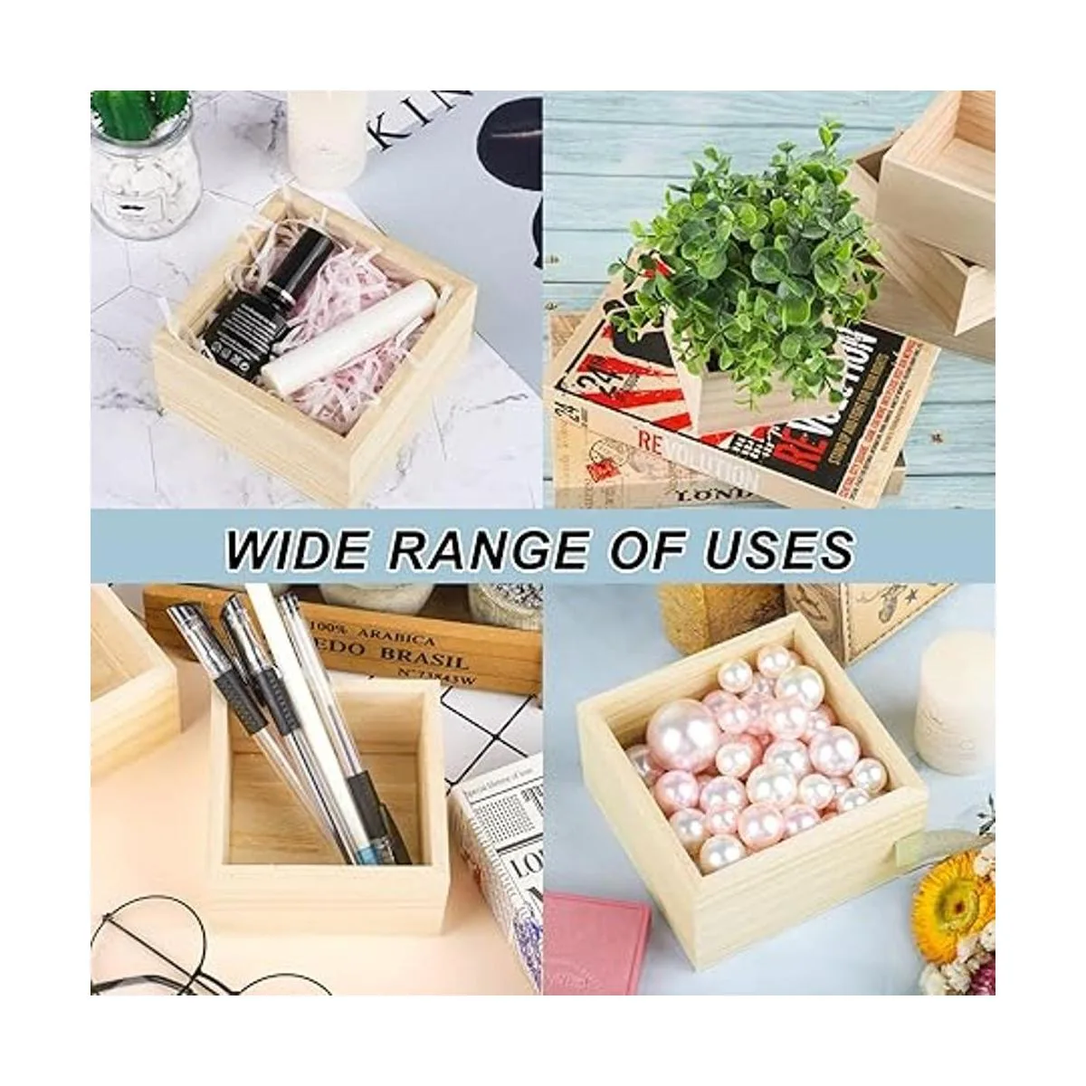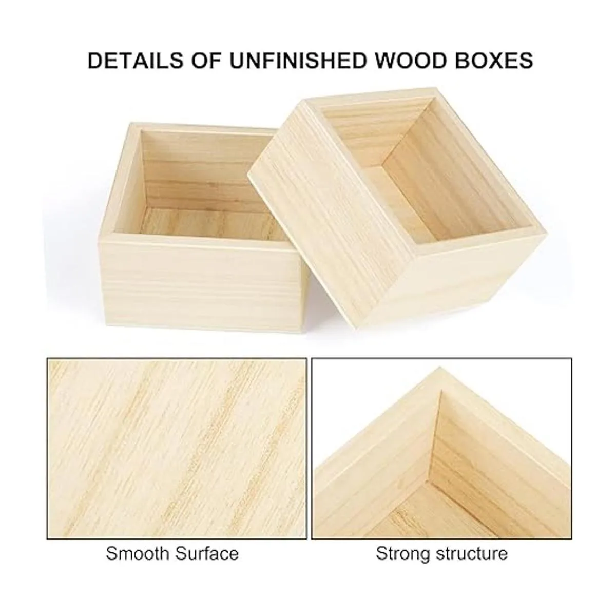 Definido por el usuario: estas cajas de madera sin terminar se pueden personalizar, pintar, teñir, lijar, quemar y tallar, puedes utilizar tu imaginación para hacerlo tú mismo, para maximizar la practicidad de las cajas de madera, como cajas de almacenamiento de cajones, cestas de regalo, cajas de almacenamiento de joyas, cajas de suculentas, etc.