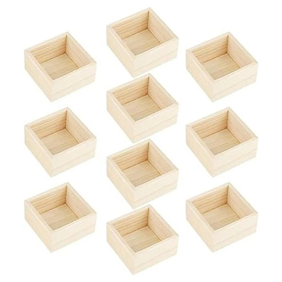 Aodaer Caja de madera de 10 piezas sin terminar, pequeña caja de madera de platano de 4 x 4 x 2.2 pulgadas, caja de tesoro rústica decorativa para manualidades, coleccionables, suculentas, decoración de cajones de escritorio