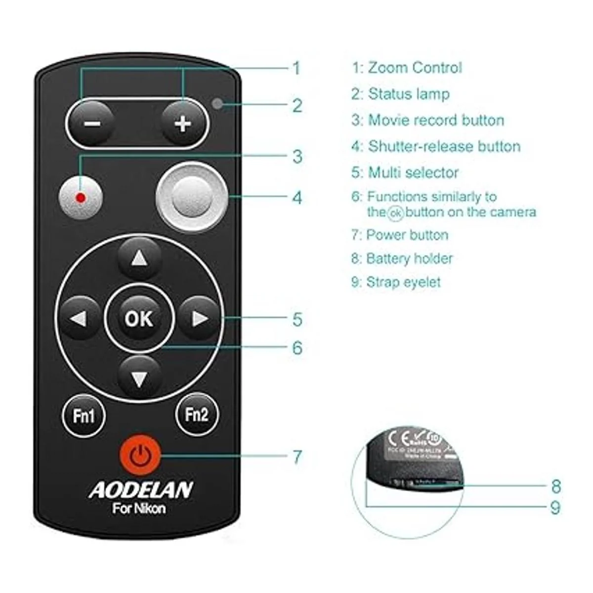 AODELAN Liberación del obturador remoto de la cámara inalámbrica para Nikon Zfc, Z50, P1000, B600, A1000, P950; reemplaza a Nikon MLL7