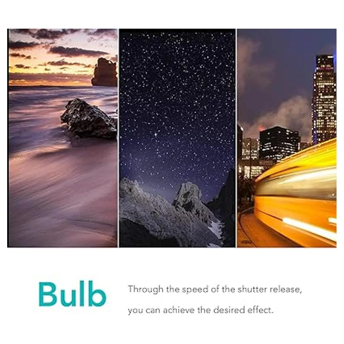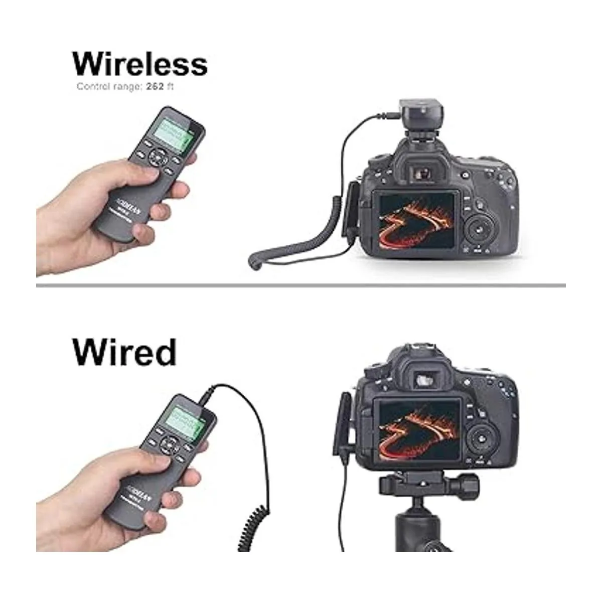 Su ajuste de sincronización puede ser preciso a 0,1 segundos. Compatible con función BKLN: la función de exposición larga con soporte permite tomar un grupo de fotos a los tiempos de exposición cambiantes automáticamente exponencialmente, útil para imágenes HDR de exposición múltiple con poca luz. Transmisión inalámbrica de 2,4 GHz, distancia de hasta 196.9 ft. La pantalla LCD es útil para funcionar en un día soleado o en la oscuridad
