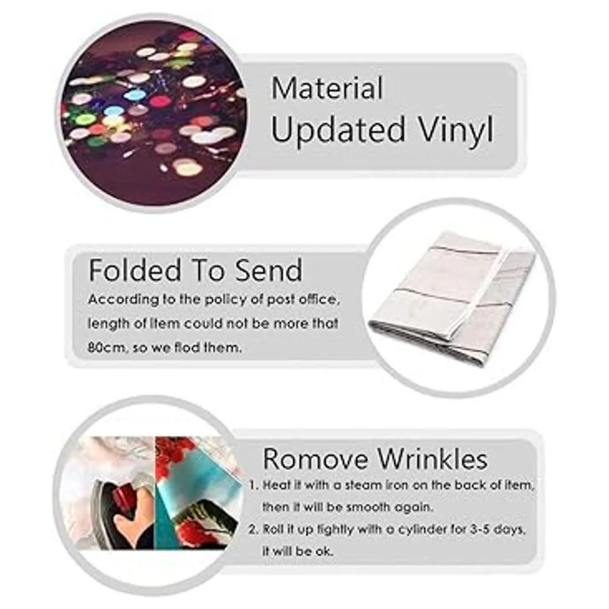 Material: vinilo fino y sin costuras, peso ligero y se puede plegar y portátil; alta resolución y calidad, no se decolora fácilmente por favor, no lo pongas bajo la luz solar directa