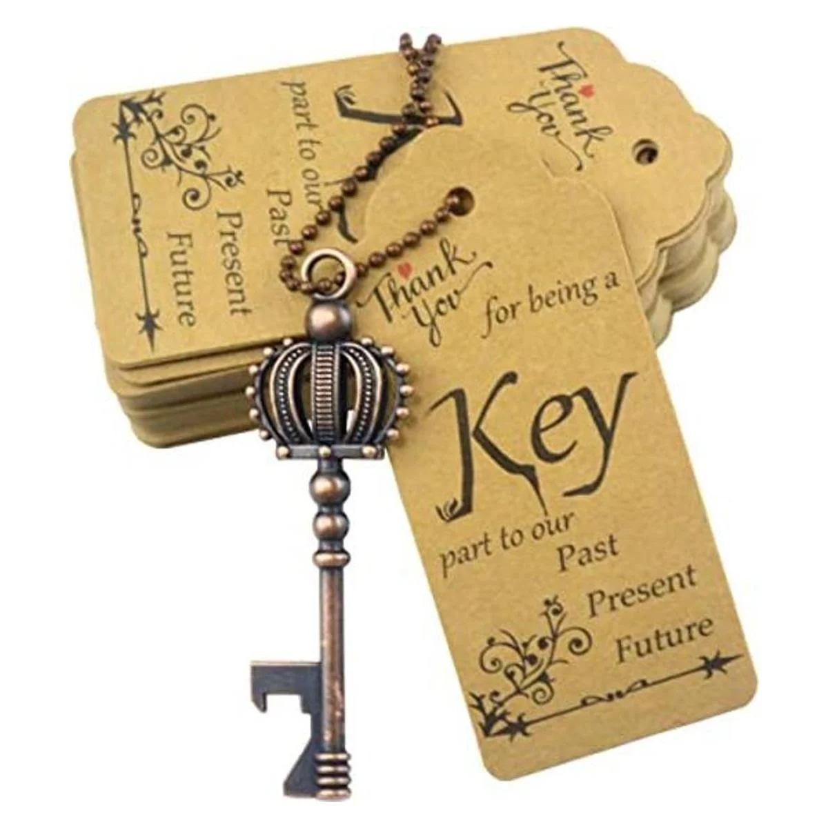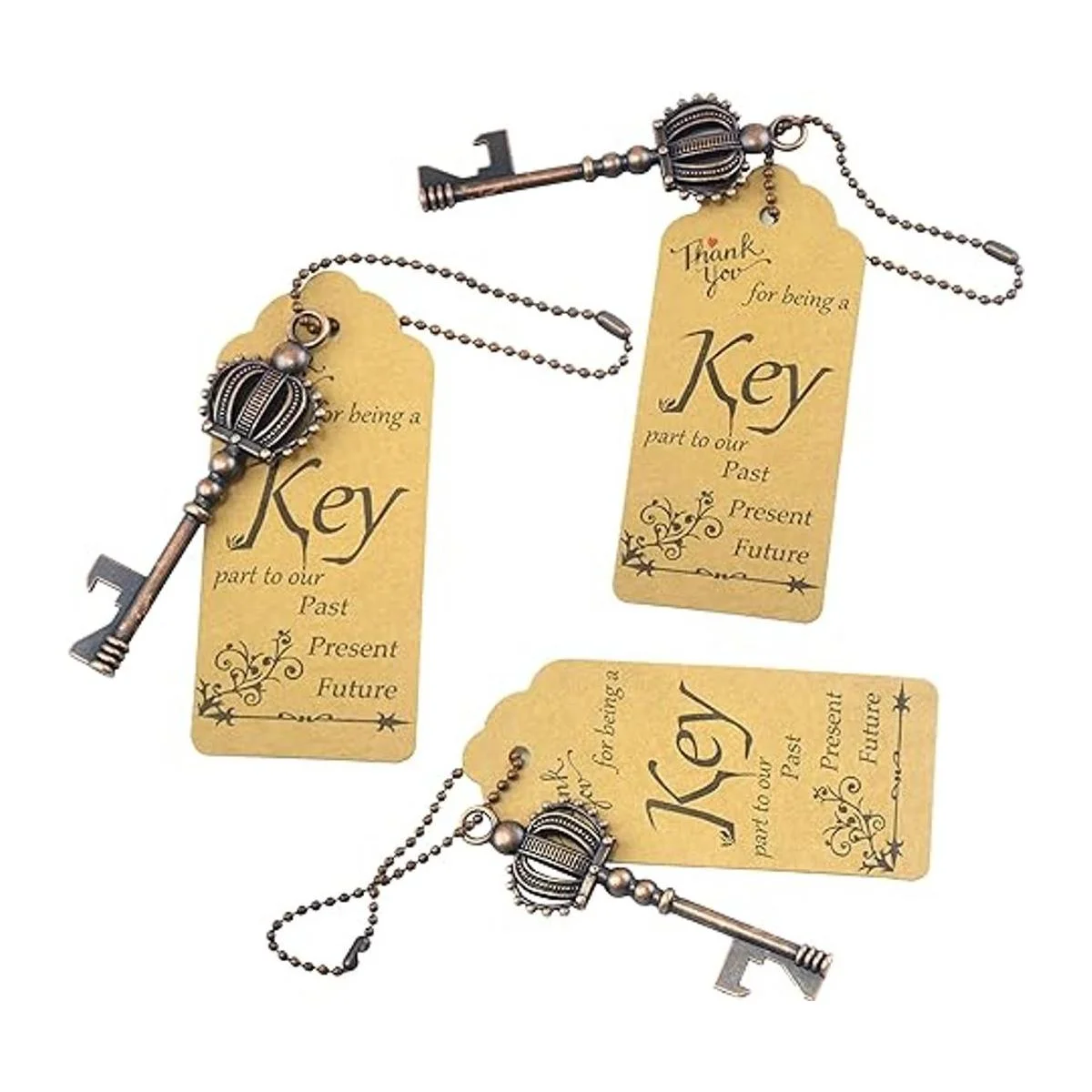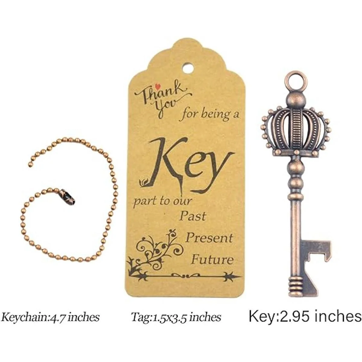 Aokbean 52 piezas de abridor de botellas de corona con etiqueta y llavero, abridor de botellas de esqueleto vintage para recuerdos de fiesta de boda cobre