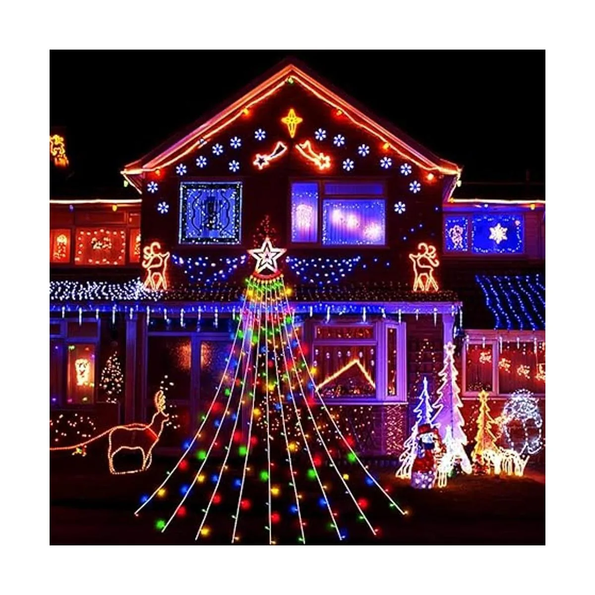 Aokudoni Decoraciones de Navidad para exteriores, 350 luces LED de cascada de 12.6 pies, 8 modos de luces de Navidad, decoraciones de Navidad para árbol, luces de Navidad al aire libre para casa, árbol de vacaciones, fiesta multicolor