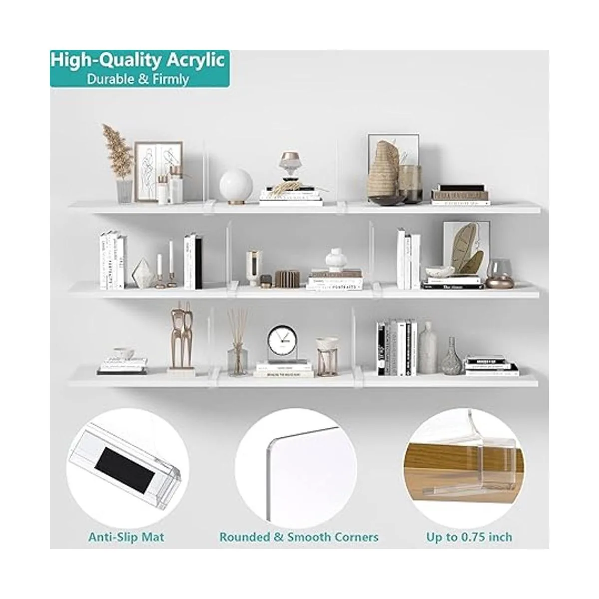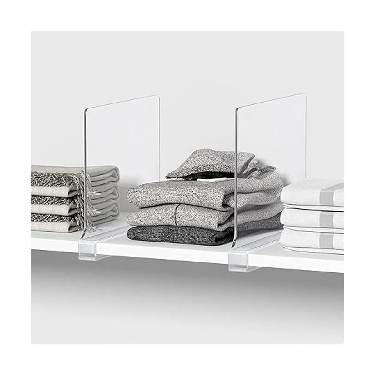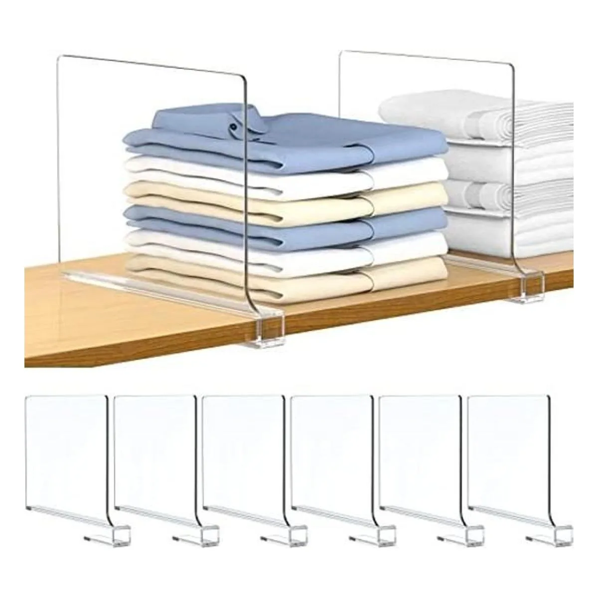 Aolloa 8 divisores de estantes para organización de armarios, separadores de estantes de acrílico transparente para estantes de madera, adecuados para estantes de madera o verticales o dormitorio, cocina y oficina