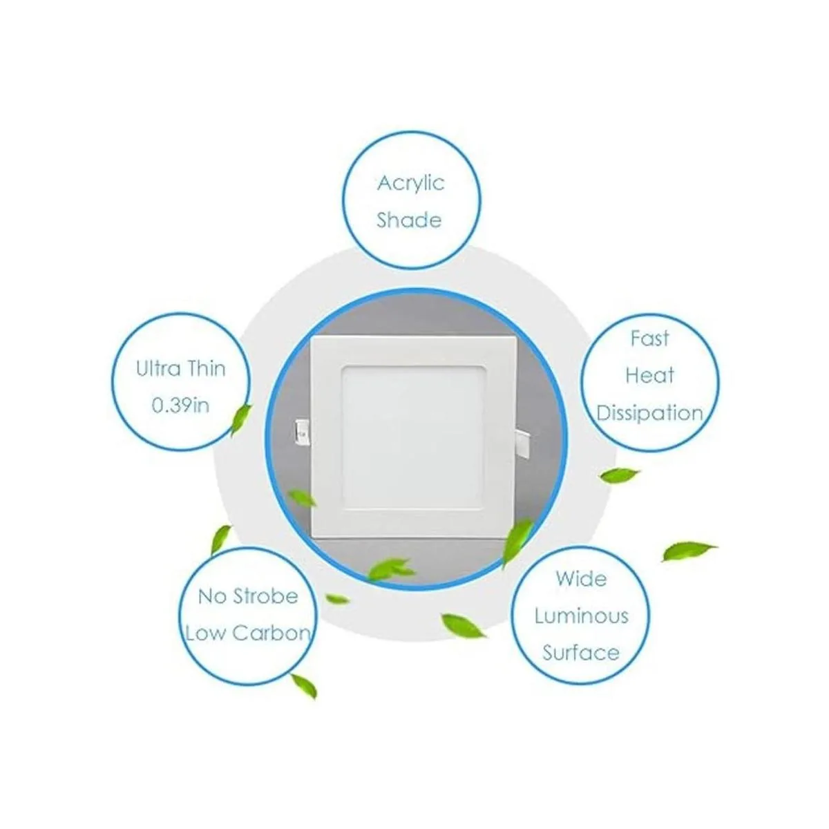 Ultradelgado: 0.39 pulgadas El grosor de todo el cuerpo de la luz es de 0.39 pulgadas, después de instalar la luz en el techo, el cuerpo de la luz restante es de solo 0.08 pulgadas de grosor, lo que casi se integra con el techo.