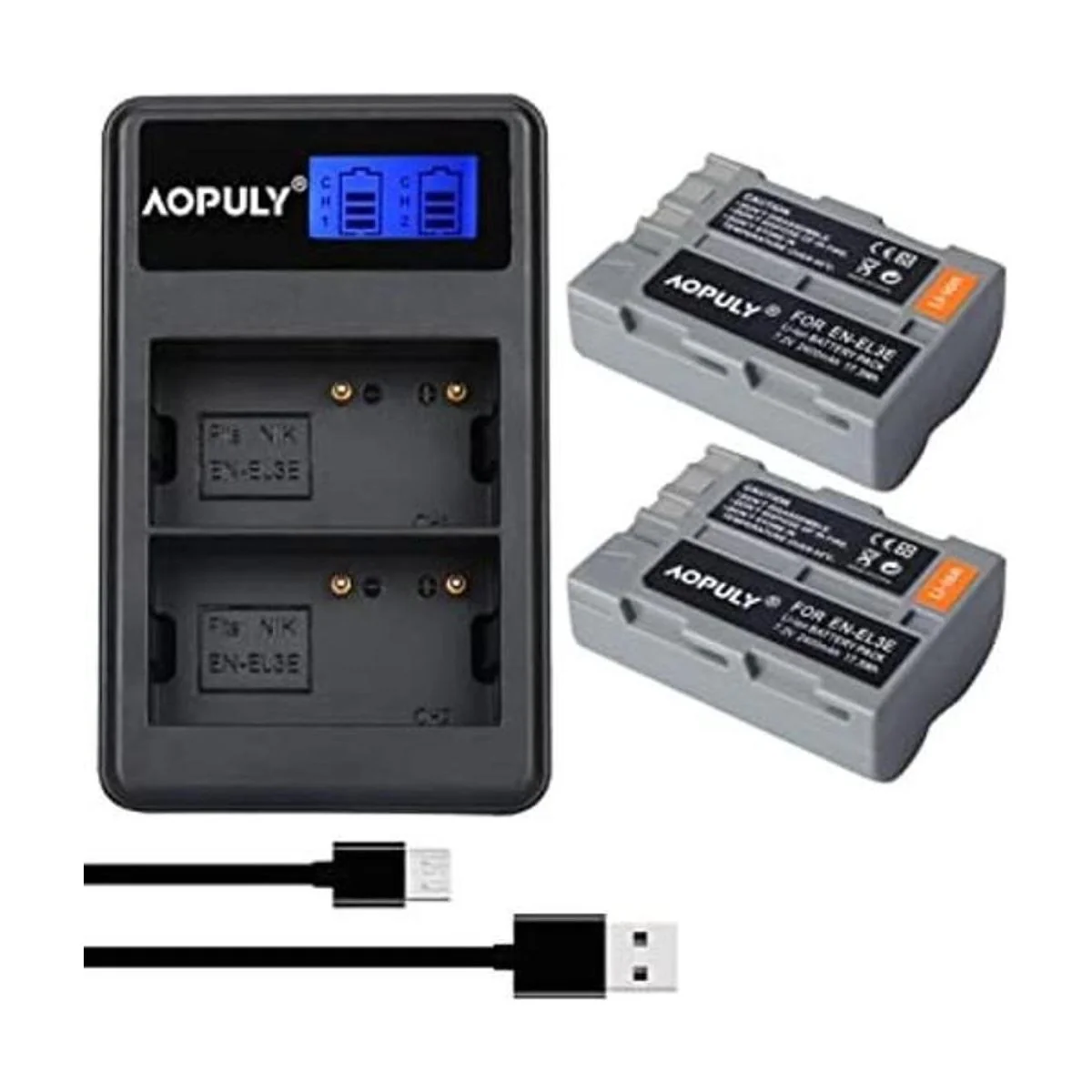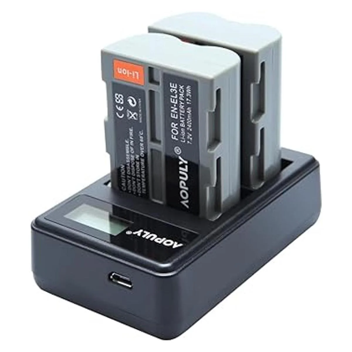 AOPULY Paquete de 2 baterías de repuesto ENEL3 ENEL3A y cargador dual LCD compatible con cámaras Nikon D50, D70, D70s, D80, D90, D100, D200, D300, D300S, D700