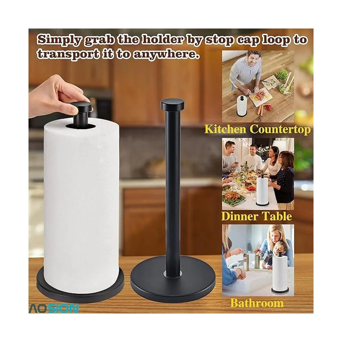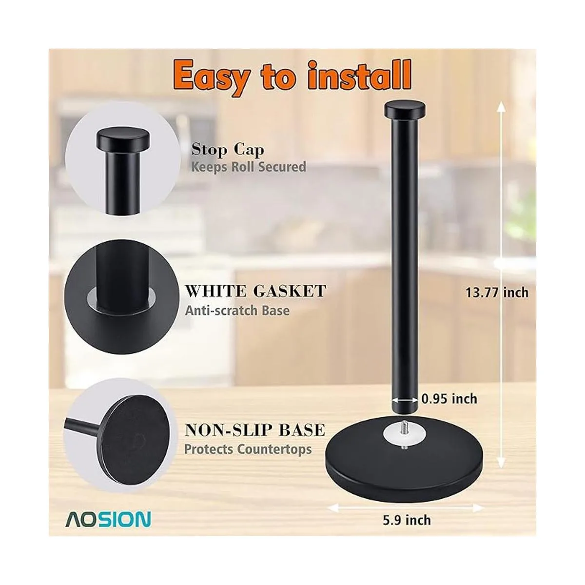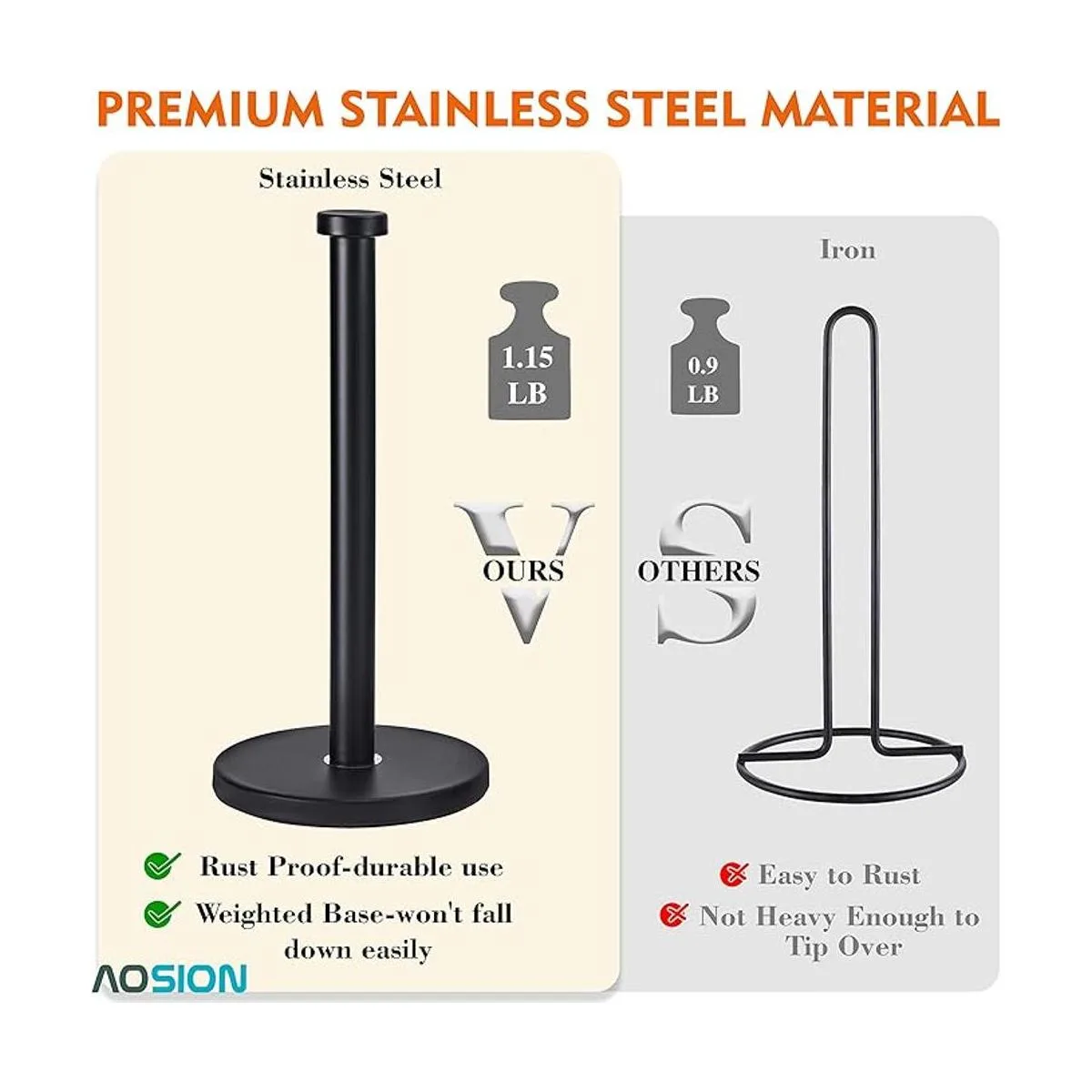 AOSION Paquete de 2 soportes para toallas de papel, encimera de acero inoxidable, soporte para toallas de papel para cocina, dormitorio, baño negro