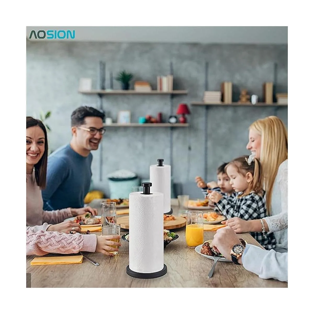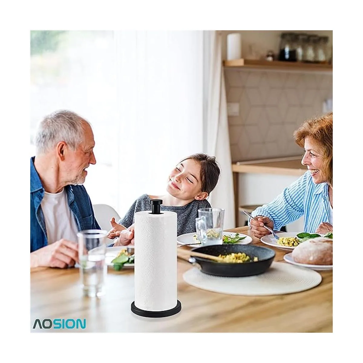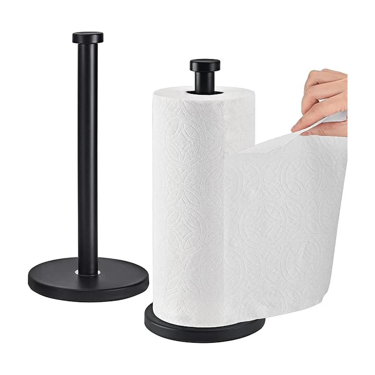 AOSION Paquete de 2 soportes para toallas de papel, encimera de acero inoxidable, soporte para toallas de papel para cocina, dormitorio, baño negro