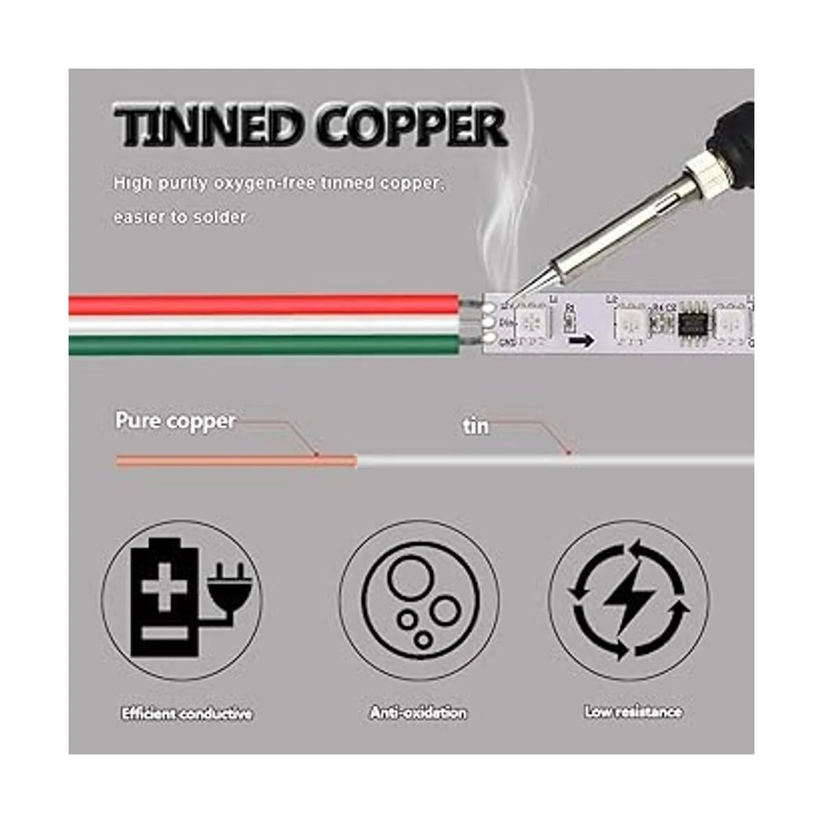 Calidad prémium: hecho de cobre chapado en estaño y PVC de alta calidad, resistencia al calor 30 176.0 F, antienvejecimiento, resistencia a ácidos y alcalinos y a prueba de humedad.