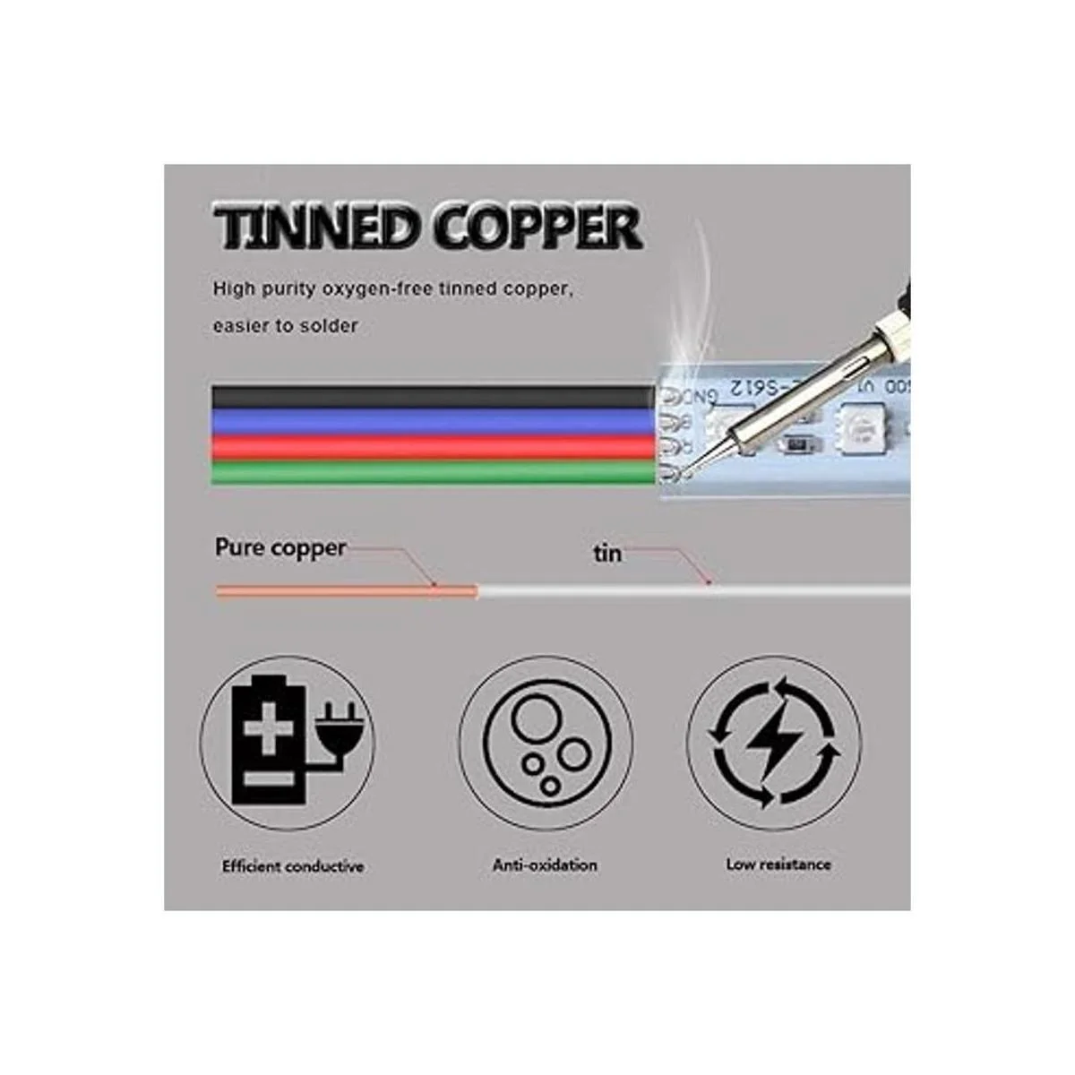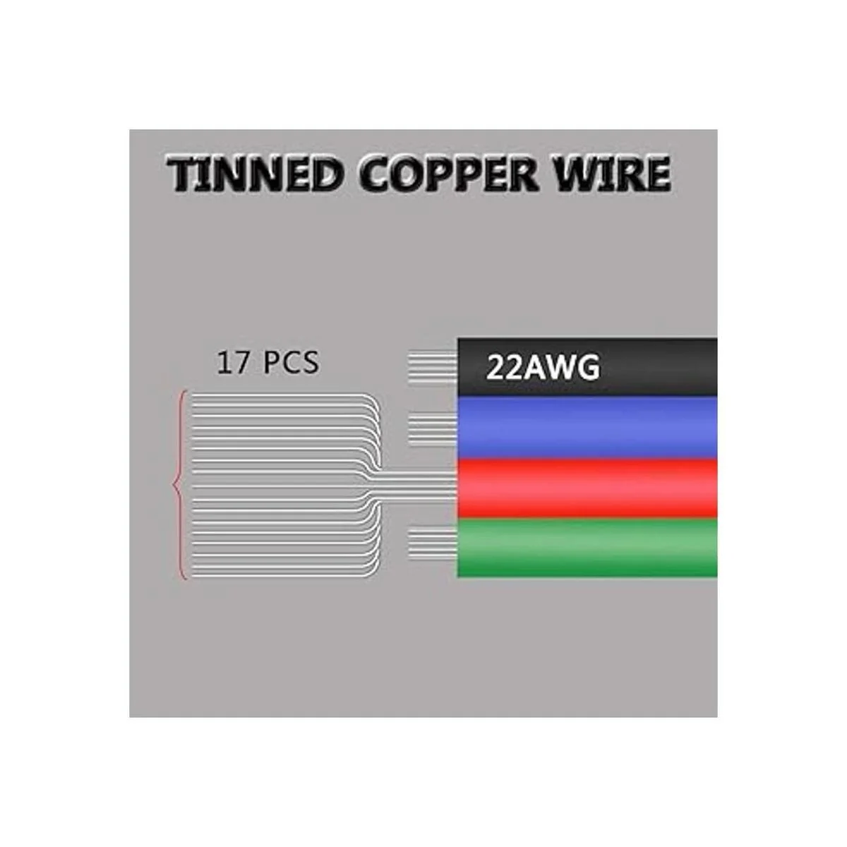 AOTOINK Cable de extensión de 4 cables RGB de 4 hilos de 4 pines 22AWG Cable de soldadura LED de cobre estañado calibre 22 ga para tira LED 3528 5050 RGB