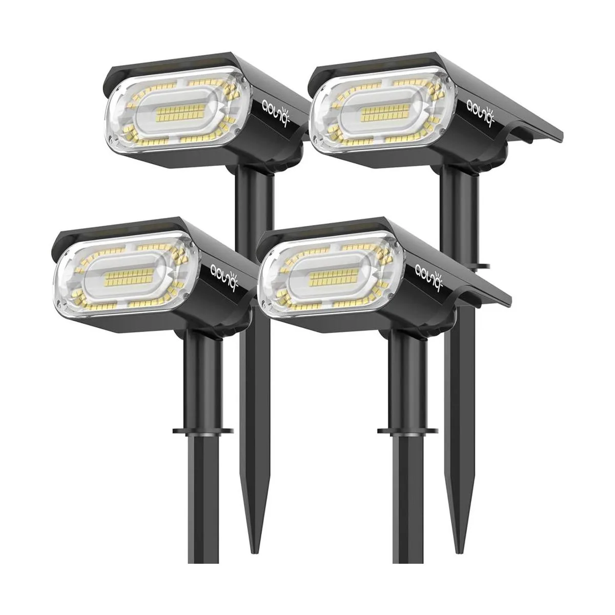 AOUNQ 64 luces LED solares para exteriores, 1000 lúmenes, 3 modos de iluminación, luces solares para exteriores, foco solar impermeable IP67, luz de jardín 2 en 1, para patio, camino, patio, bandera de patio, paquete de 4
