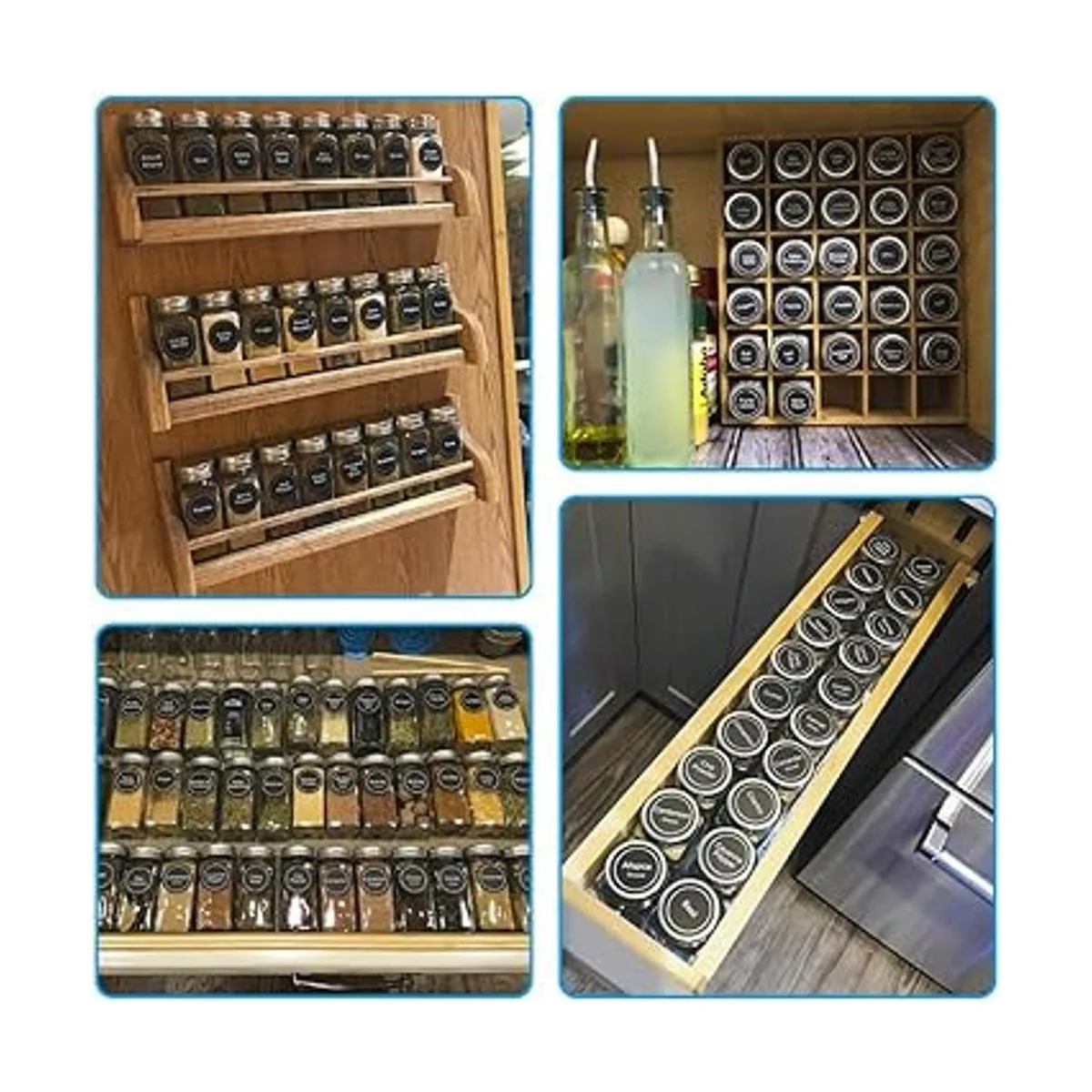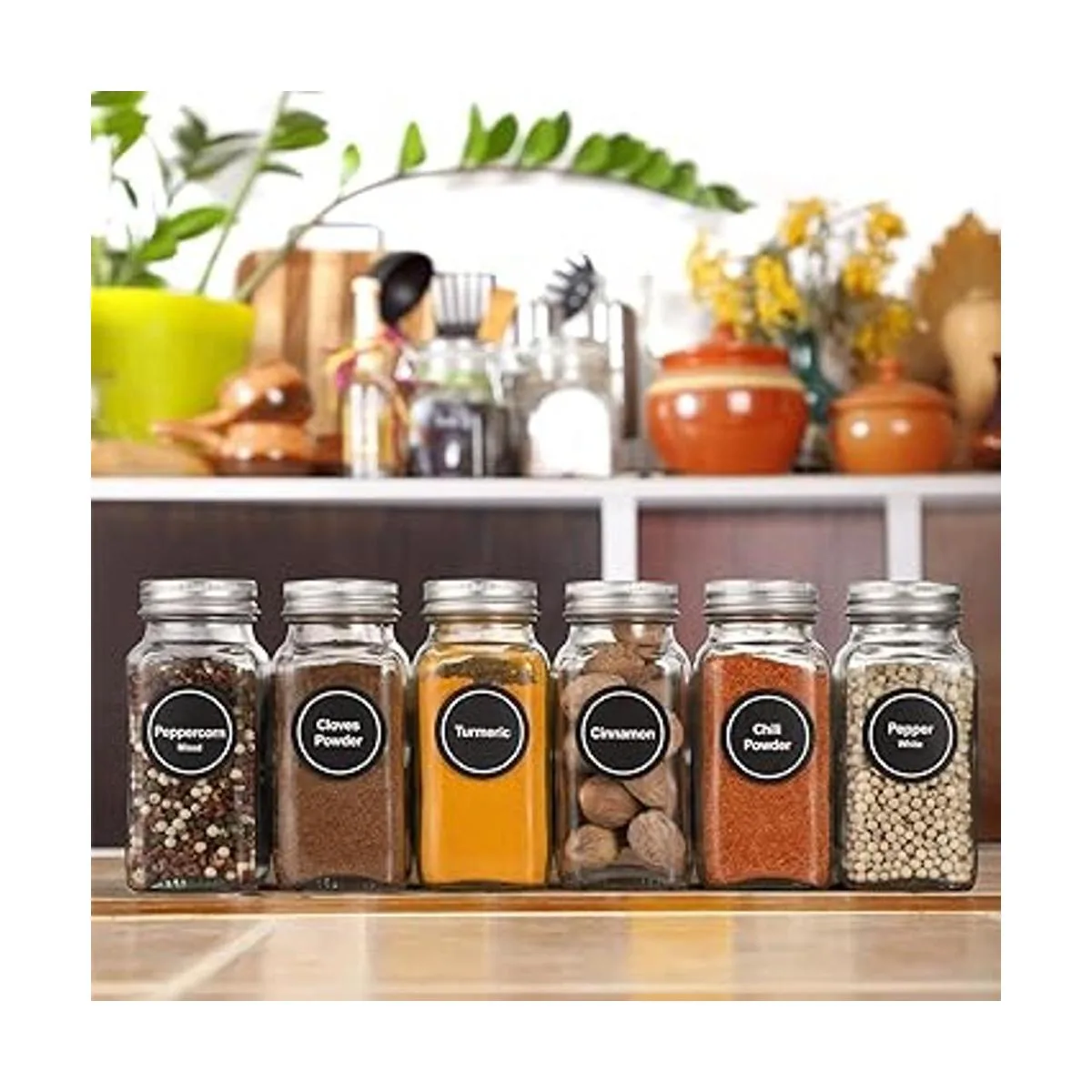 Tarros de alta calidad: nuestros tarros de especias están hechos de vidrio duradero sin plomo de alta calidad. El cristal transparente te permite tener un aspecto claro de especias, cada tarro de vidrio cuadrado mide aproximadamente 4 1/8 x 1 3/4 pulgadas con una apertura de 1 1/4 pulgadas. La forma cuadrada de diseño moderno y la parte superior se adaptan a cualquier especiero, armario, organizador, cajones o cocina.
