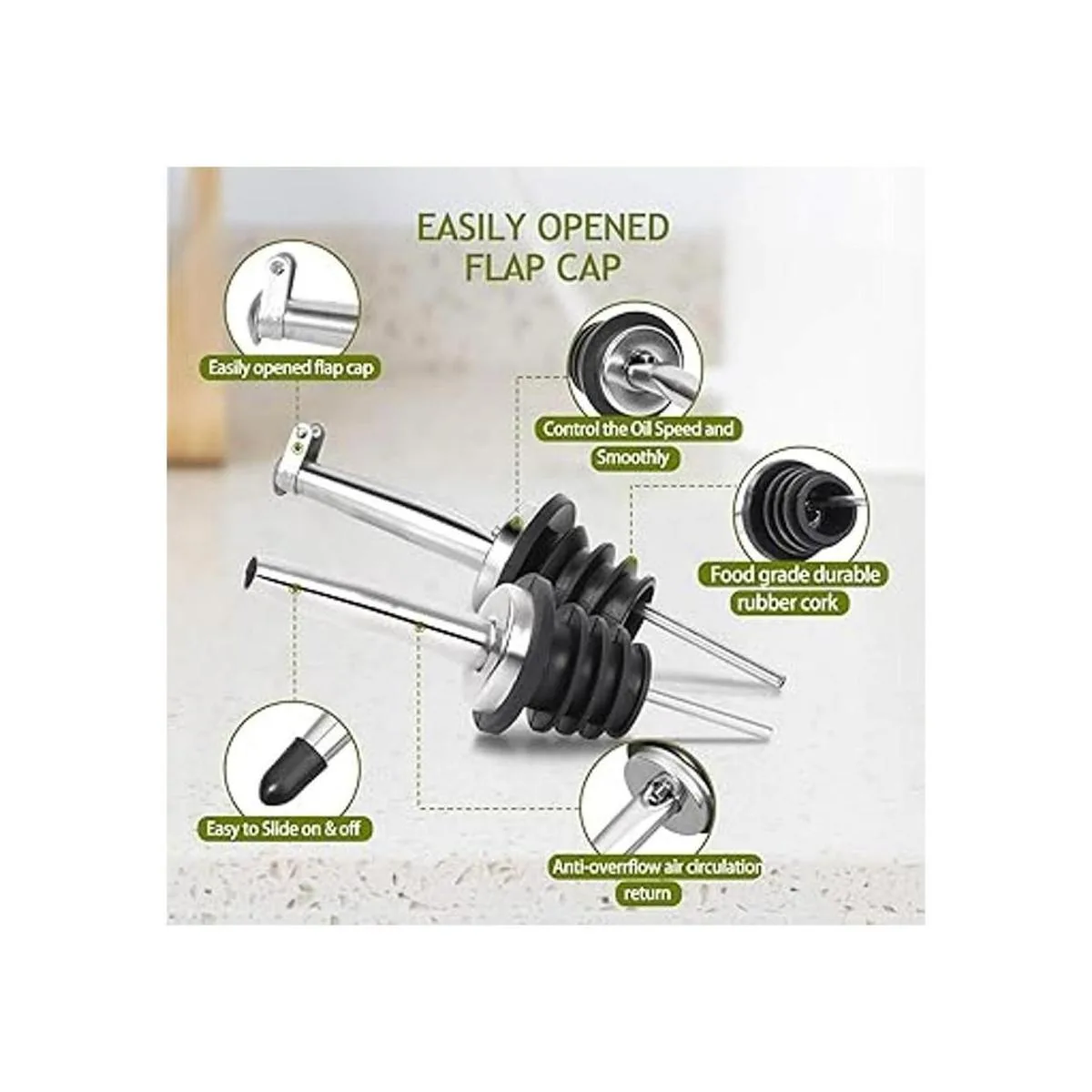 Boquillas funcionales: contiene 2 tipos de vertedor de acero inoxidable sin goteo con diferentes tapas, uno con la parte superior de silicona ayuda a sellar y evita derrames, y la parte superior de la solapa es a prueba de polvo, pero mientras tanto, mantiene el aceite vertiendo fácilmente, sin necesidad de otras acciones redundantes. Ambas boquillas tienen circulación de aire para evitar el desbordamiento y corcho de goma para obtener un buen vertido y sellado.