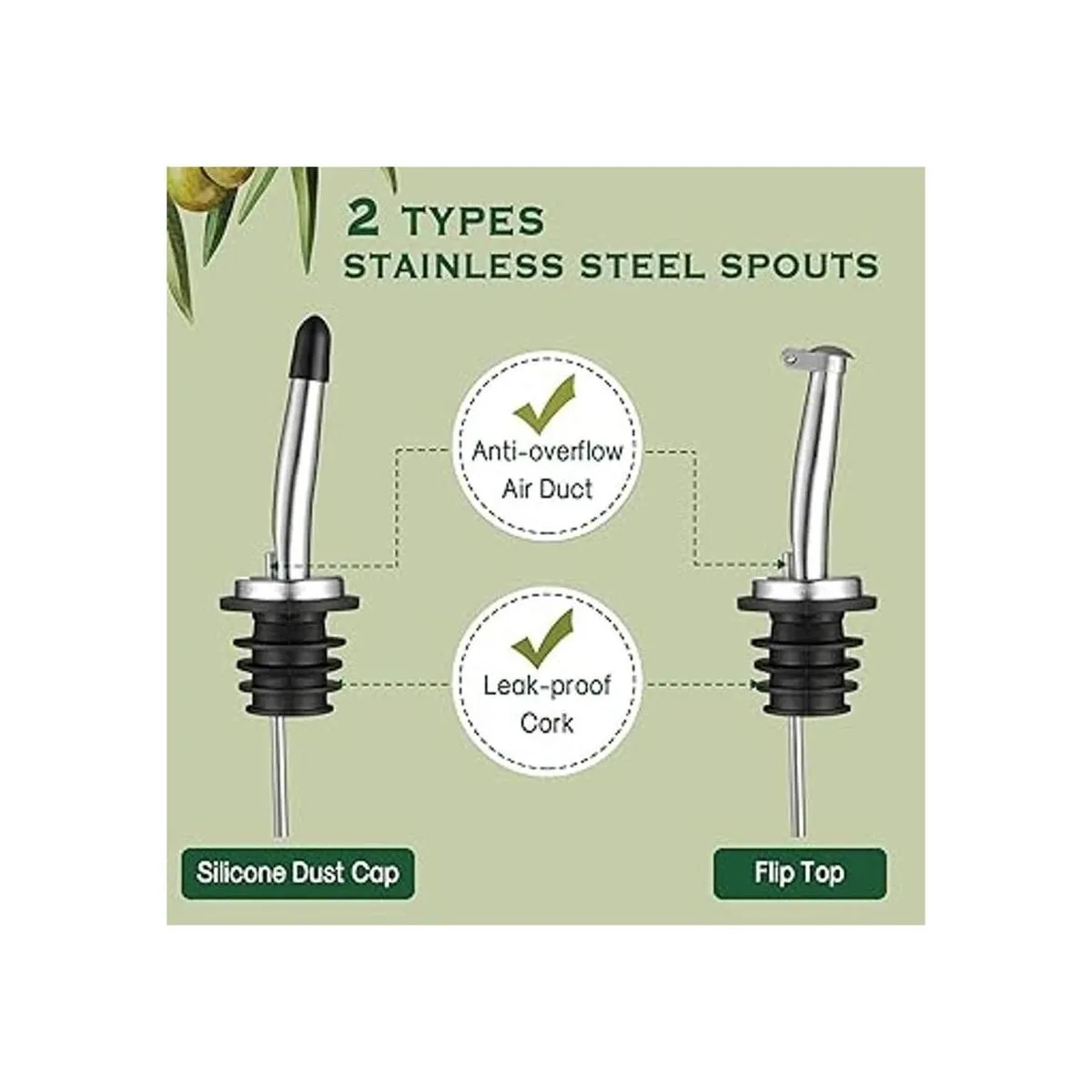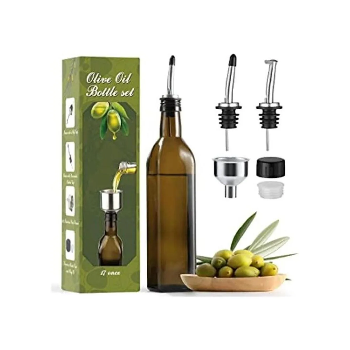 AOZITA Dispensador de aceite de oliva de vidrio de 17 onzas Botella de aceite y vinagre con vertedores de acero inoxidable Embudo para un fácil recambio Decantador de jarra de aceite de oliva para cocina