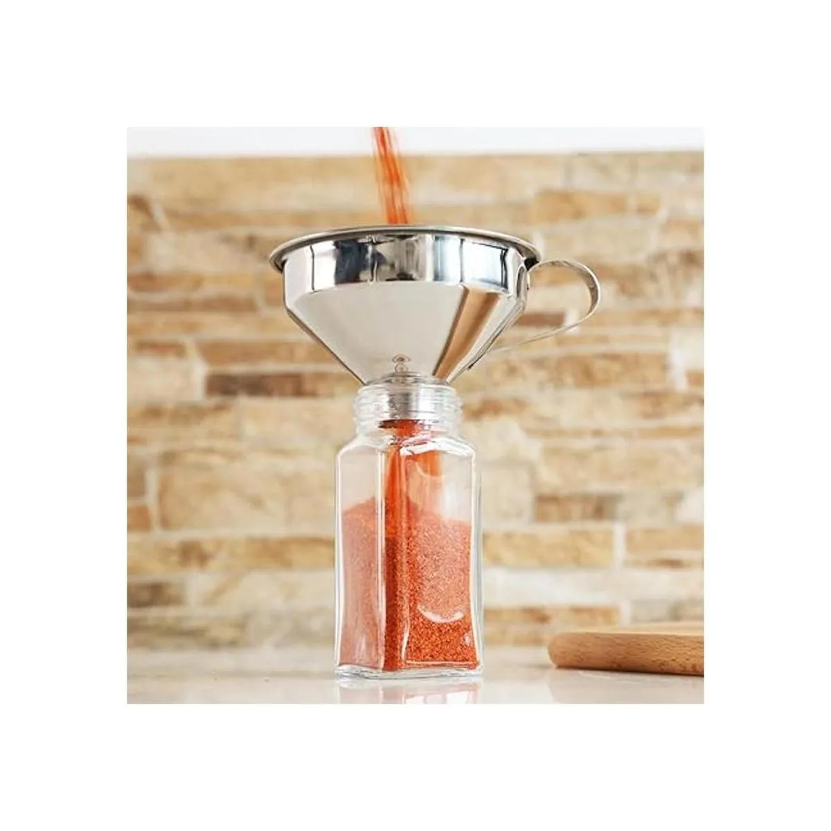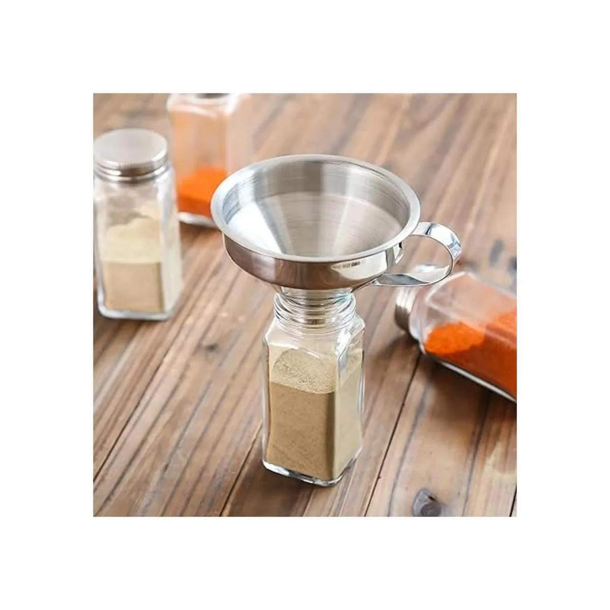 Después de investigar e investigar, diseñamos el embudo de especias con diámetro inferior de 0.8 pulgadas, que atiende a la mayoría de los frascos de especias en el mercado. Nunca demasiado grande o demasiado pequeño.