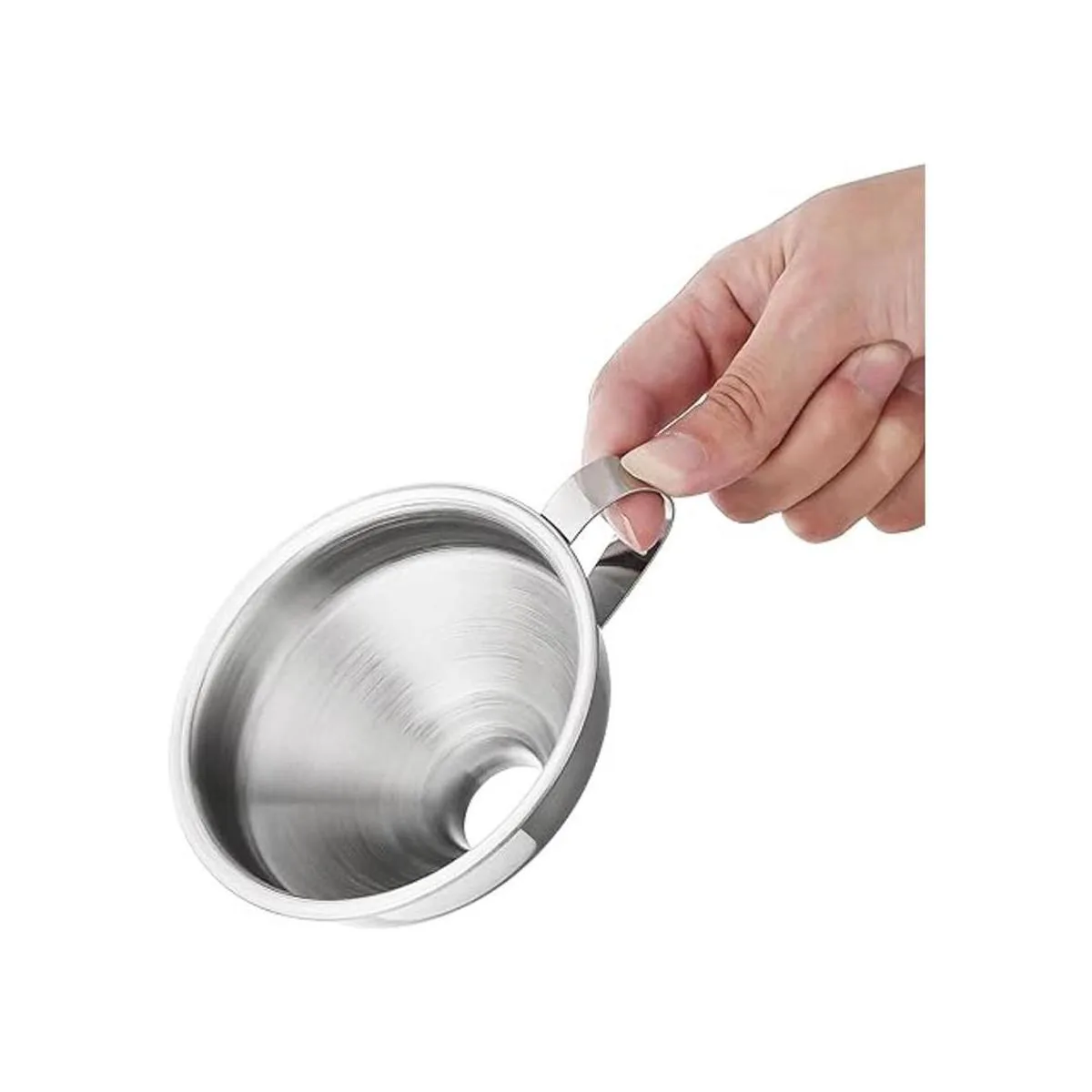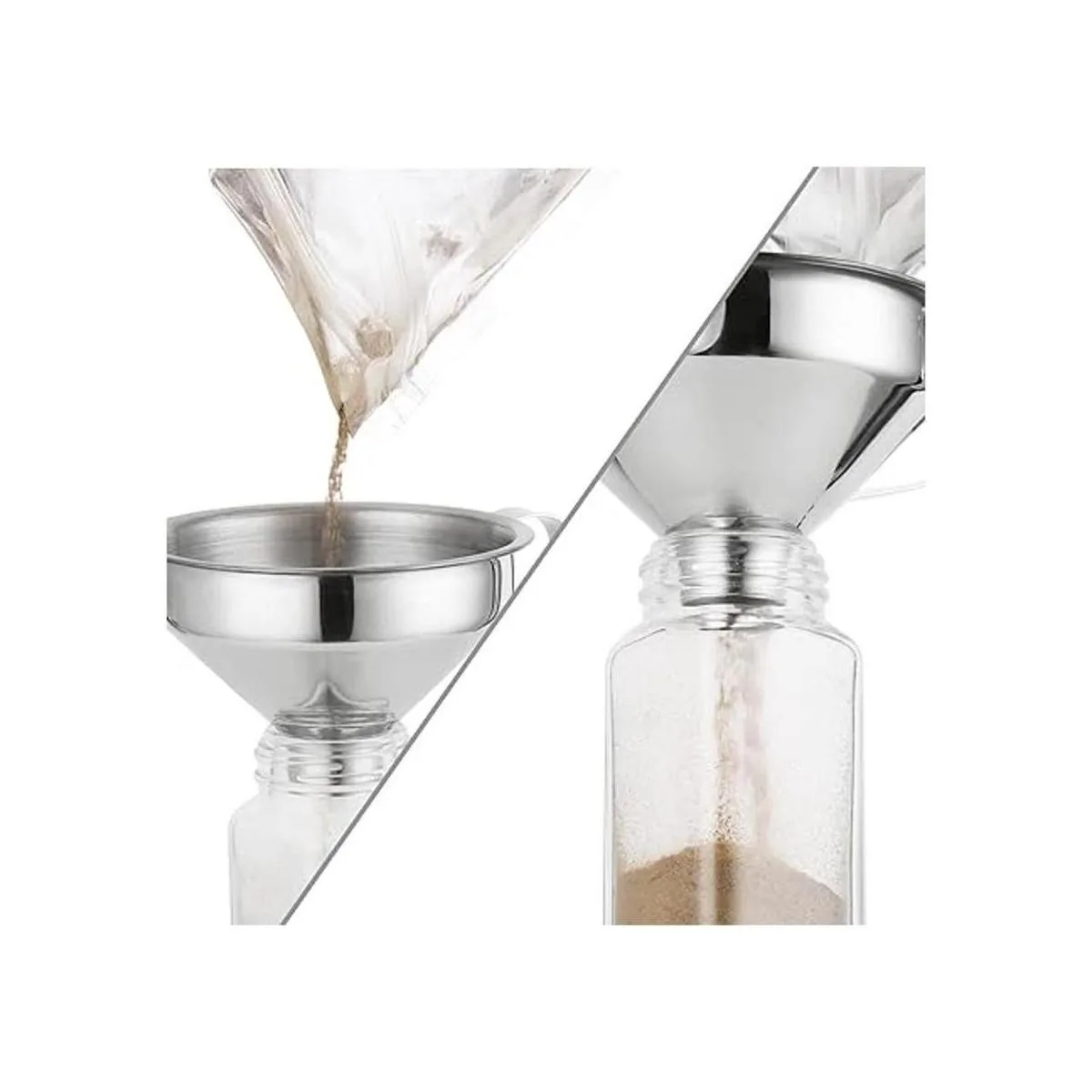 Acero inoxidable duradero. Está hecho de acero inoxidable 18/8 de alta calidad para garantizar seguridad y durabilidad. Mucho mejor que el embudo de plástico que adquiere el color y el olor de algunos ingredientes.