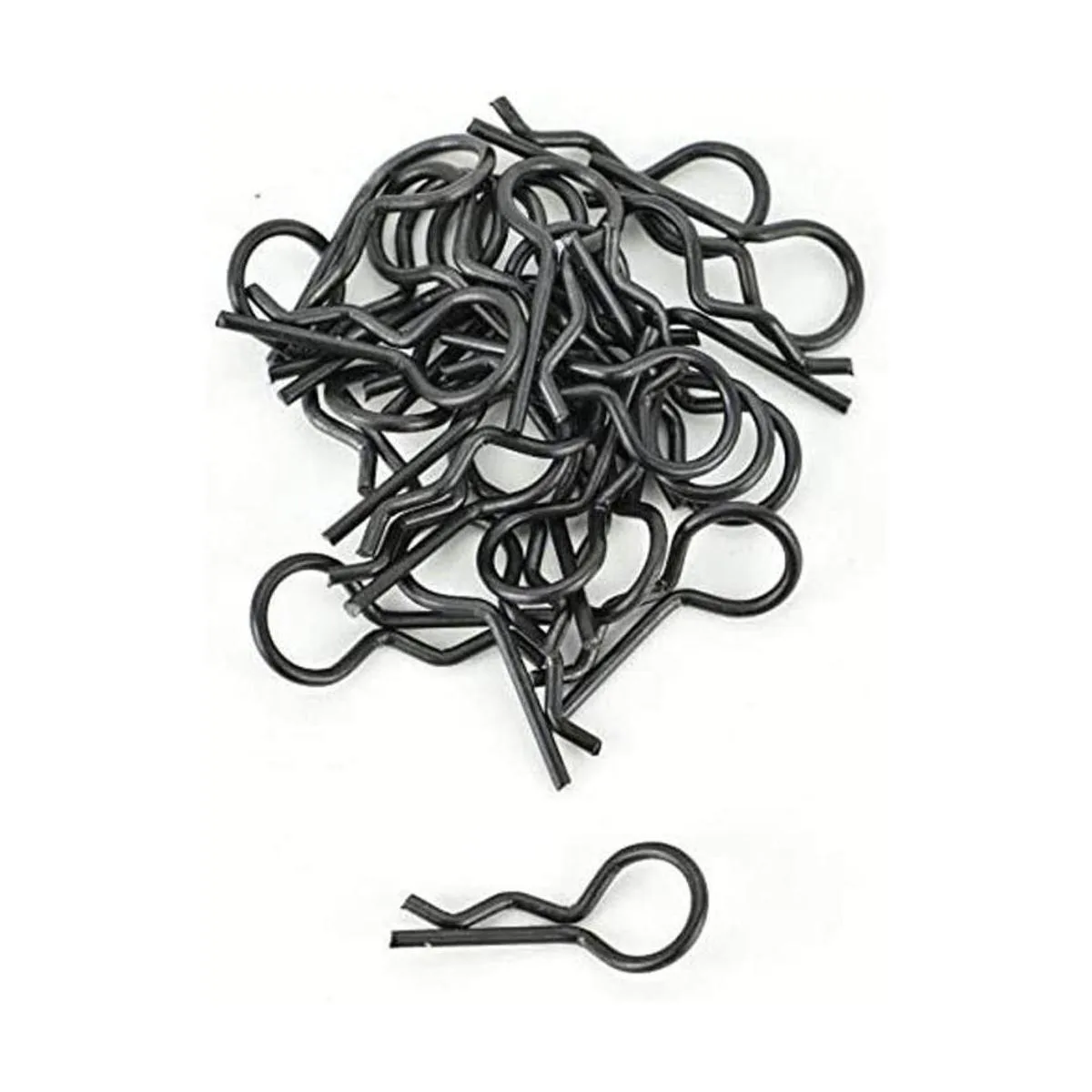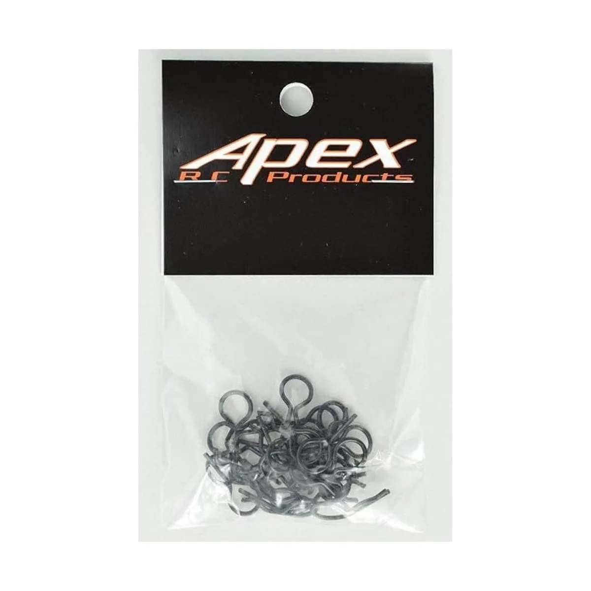Apex RC Products Clips de cuerpo anodizados RC curvados grandes 110, color negro, 25 piezas 4031BK