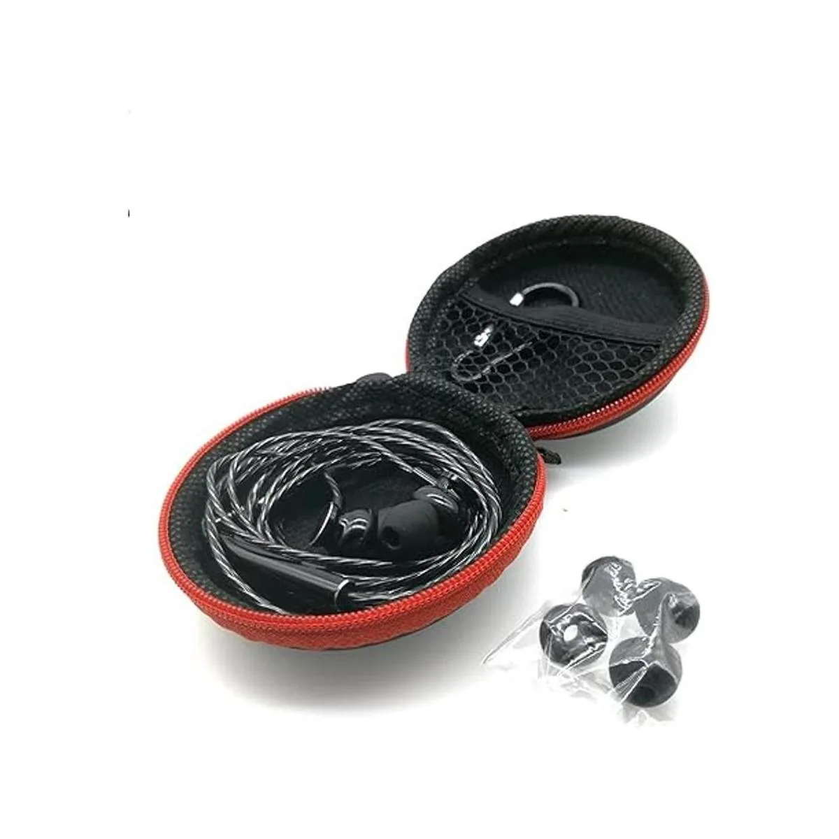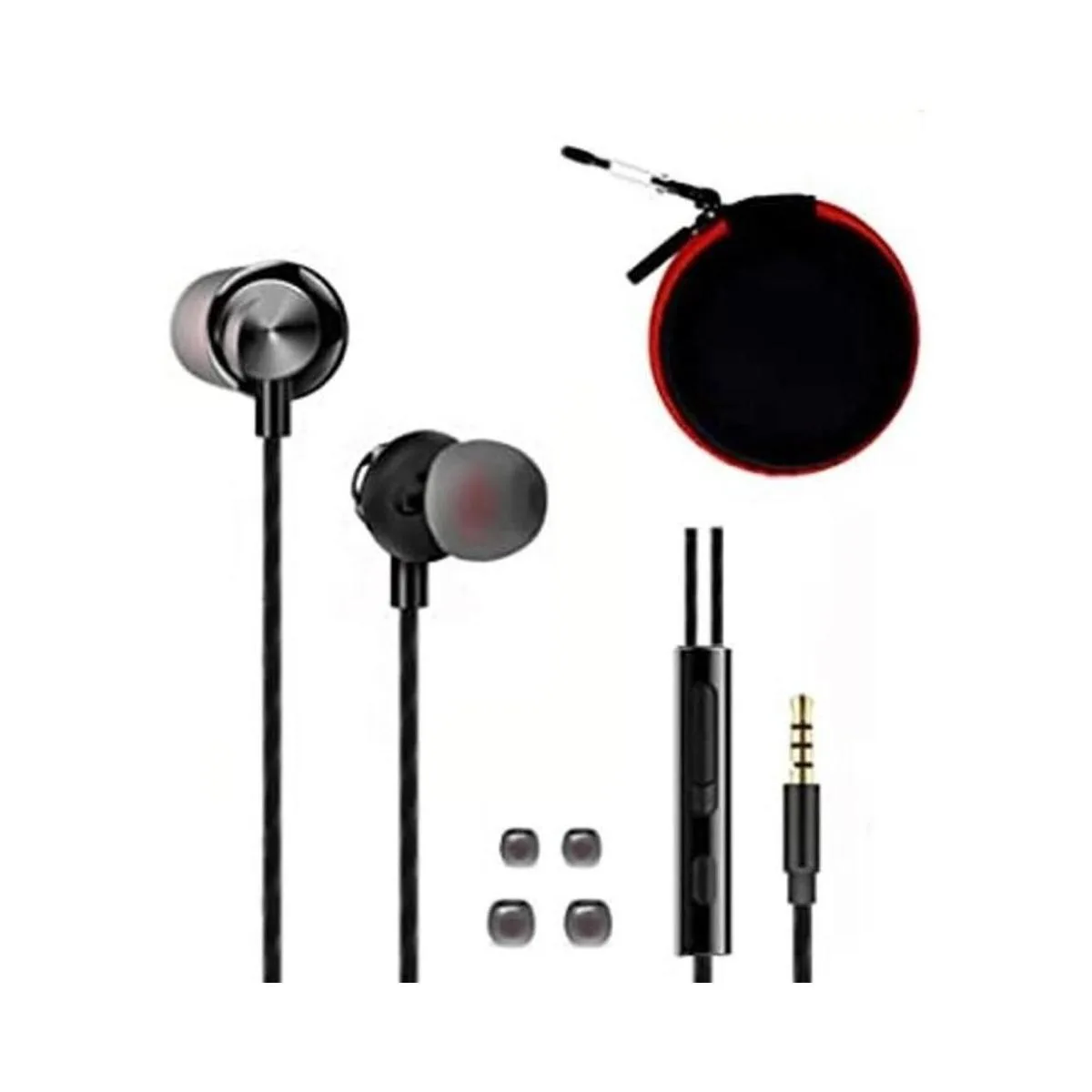 ApexOne Auriculares intrauditivos de metal con cable con micrófono y control de volumen y funda de bolsillo, auriculares con aislamiento de ruido estéreo de graves de sonido transparente auriculares, estuche de almacenamiento rojo y 2 puntas pequeñas incluidas