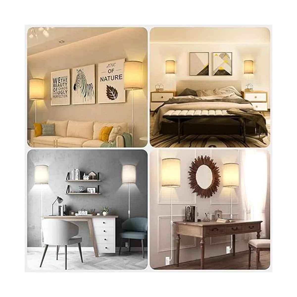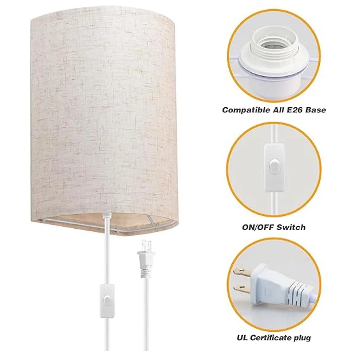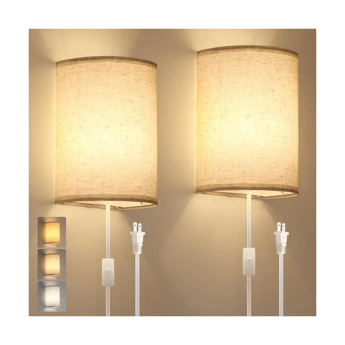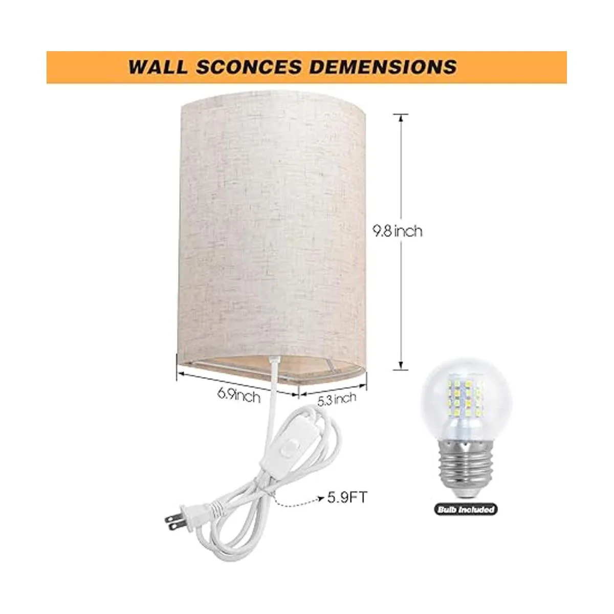 Ahorro de energía y seguro: los apliques de iluminación de pared utilizan una base de bombilla estándar E26 de Estados Unidos, incluye 3 bombillas de colores libres para cambiar, puede ayudarte a ahorrar dinero y tiempo en reemplazar accesorios. Pantalla de lino de tela, lámpara de pared con cable de enchufe e interruptor de encendido/apagado, tanto el enchufe como el soporte de la lámpara han pasado la certificación UL