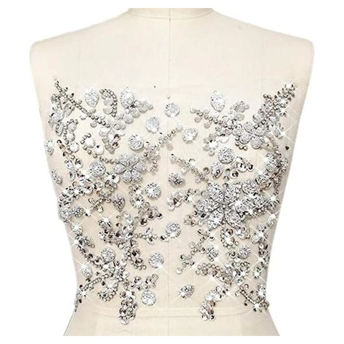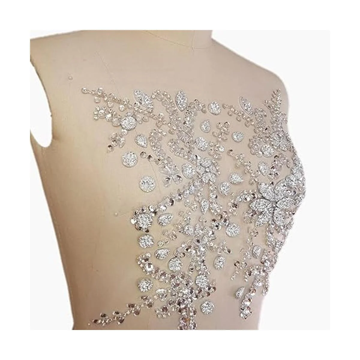 Apliques de flores con cuentas hechas a mano, brillantes, para coser y coser con diamantes de imitación, para vestidos de boda, parches, decoración de cintura, accesorio de cintura en el pecho, 10.6 x 12.2 pulgadas plata