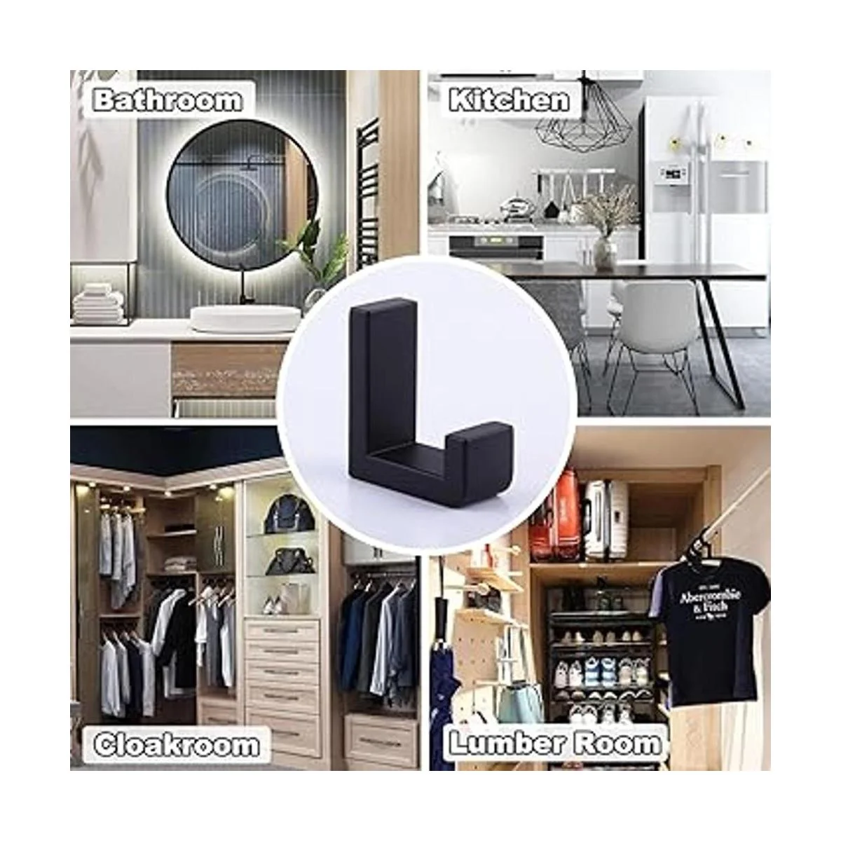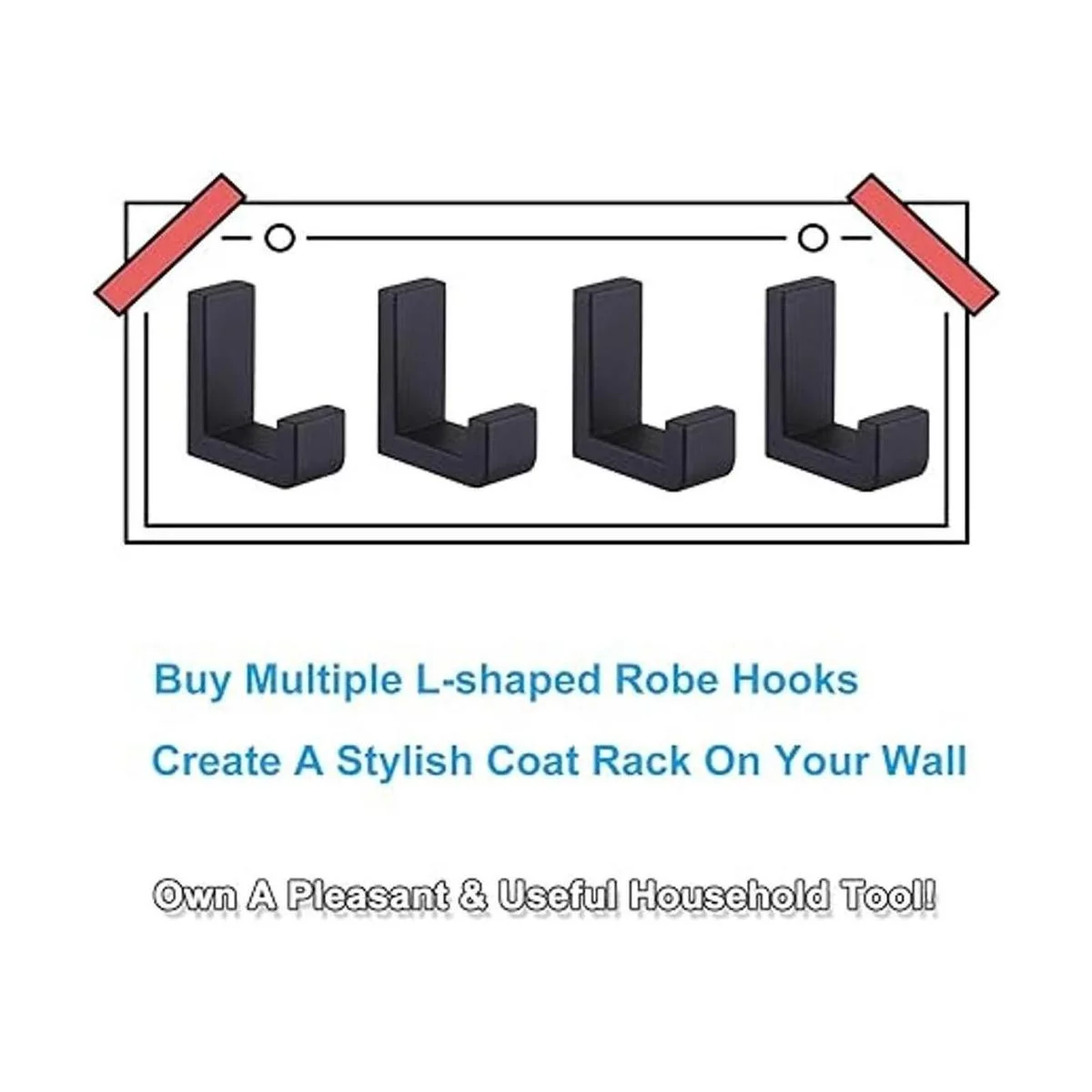 APLusee Gancho para toalla de baño, acero inoxidable 304, moderno, en forma de L, práctico gancho para ducha, para baño, cocina, almacenamiento en el hogar negro mate