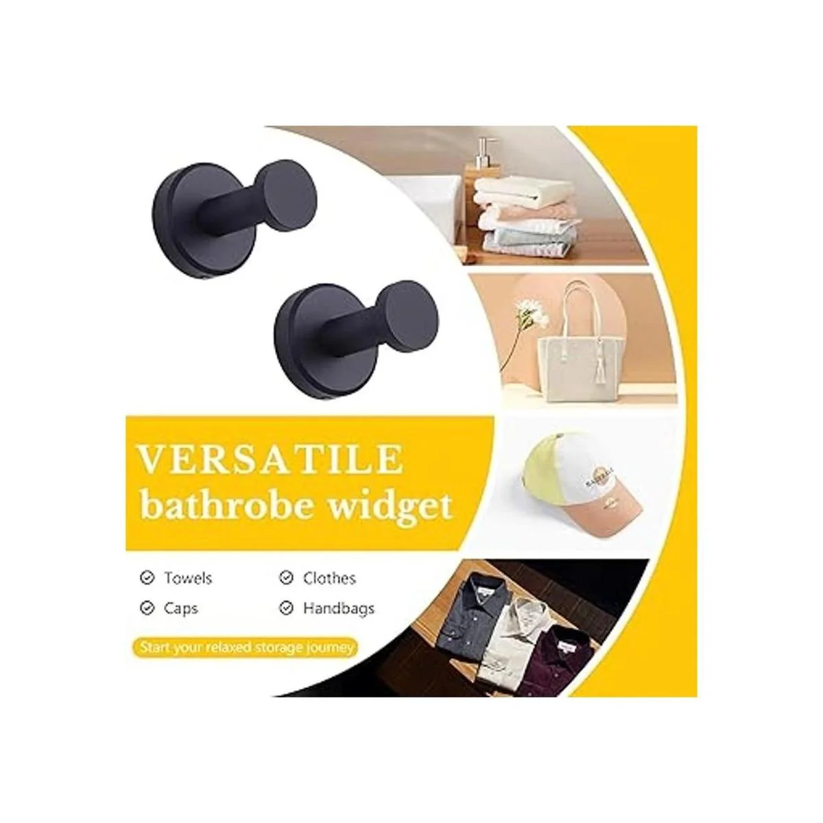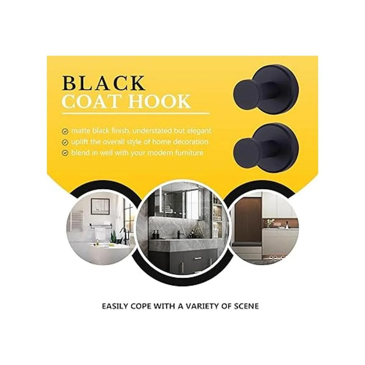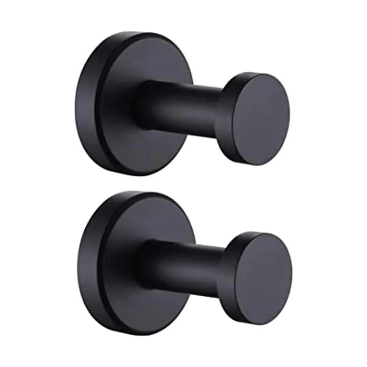 APLusee Juego de 2 ganchos para toallas de baño, perchas redondas de acero inoxidable, soporte de pared decorativo contemporáneo para ropa de cocina para inodoro negro mate