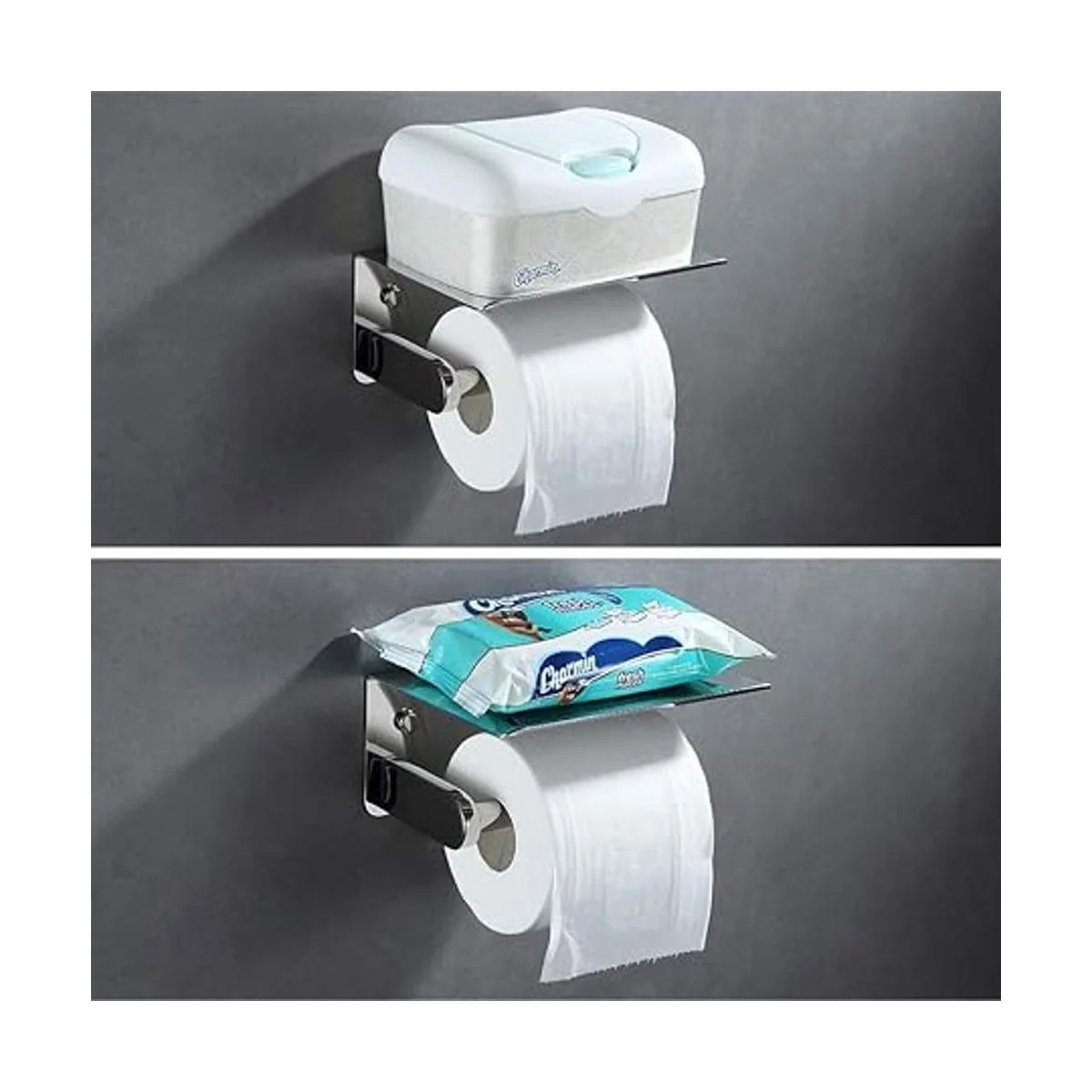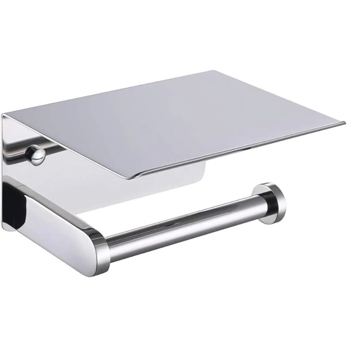 APLusee Soporte de papel higiénico con estante de teléfono, cromo pulido, accesorios de baño de acero inoxidable SUS 304, dispensador de rollos de pañuelos, almacenamiento montado en la pared