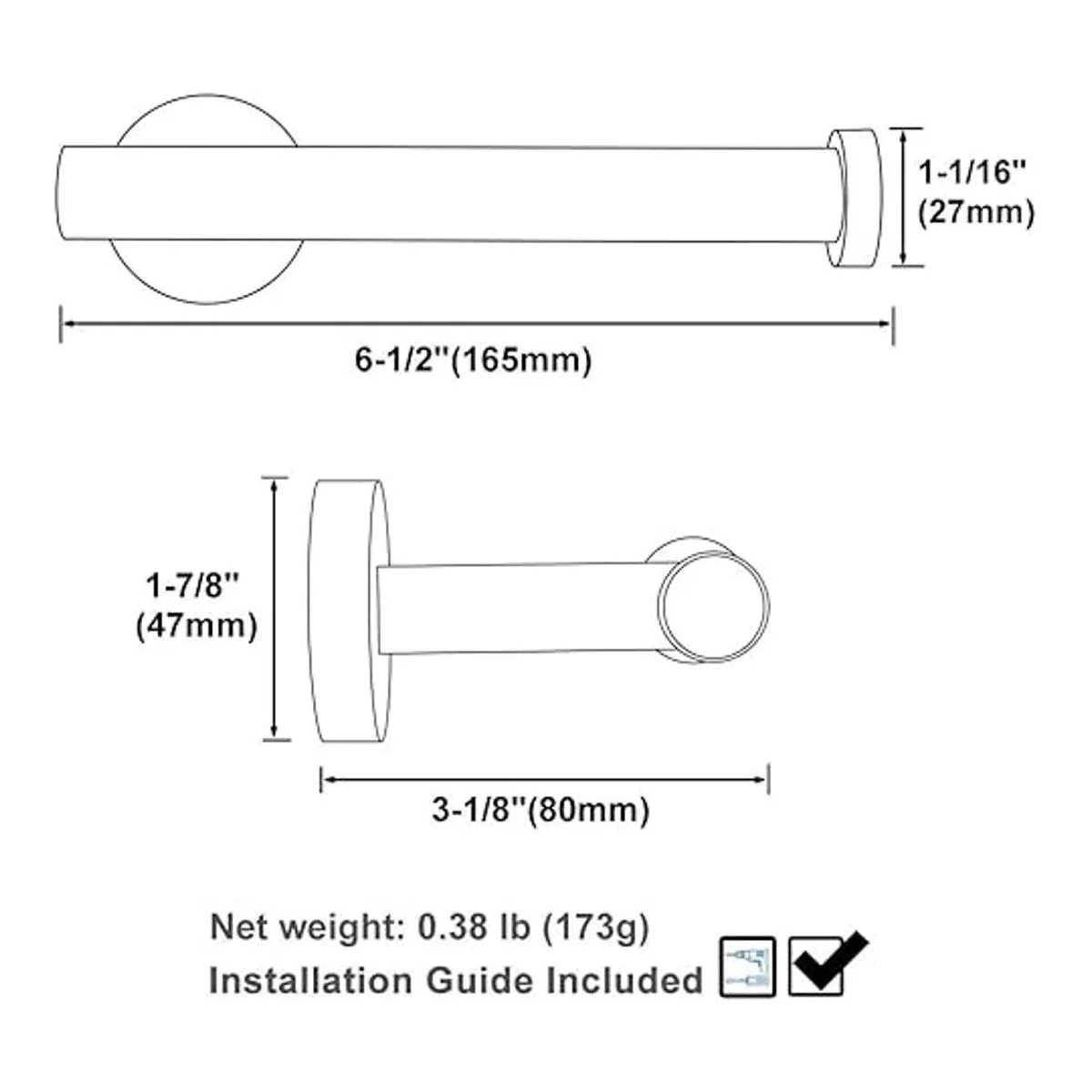 Percha multiusos, el soporte para pañuelos de baño tiene el tamaño adecuado para rollos regulares, grandes, megas, jumbo, excluye otros de gran tamaño, por ejemplo, Super mega, rollos más grandes, también se puede utilizar como toalla de mano, soporte para toallas de cocina. Un buen ahorro de espacio para organizar tus accesorios de baño. Tamaño total: 6.496 x 3.150 x 1.850 in.