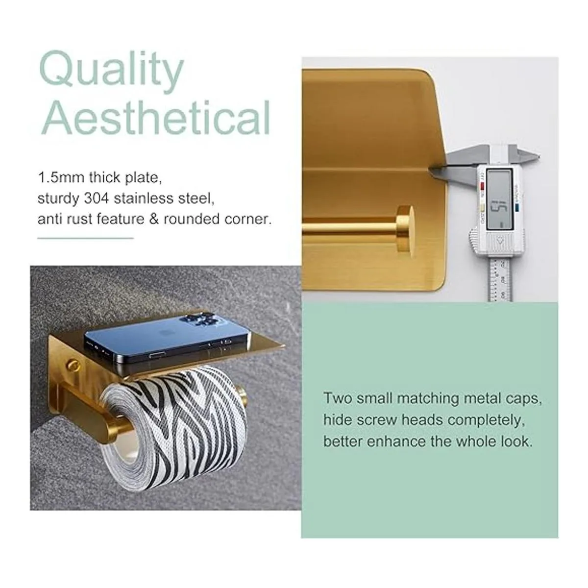APLusee SUS 304 Soporte de papel higiénico con estante de teléfono, organizador de rollos de pañuelos contemporáneos de acero inoxidable para almacenamiento de teléfono, accesorios de baño