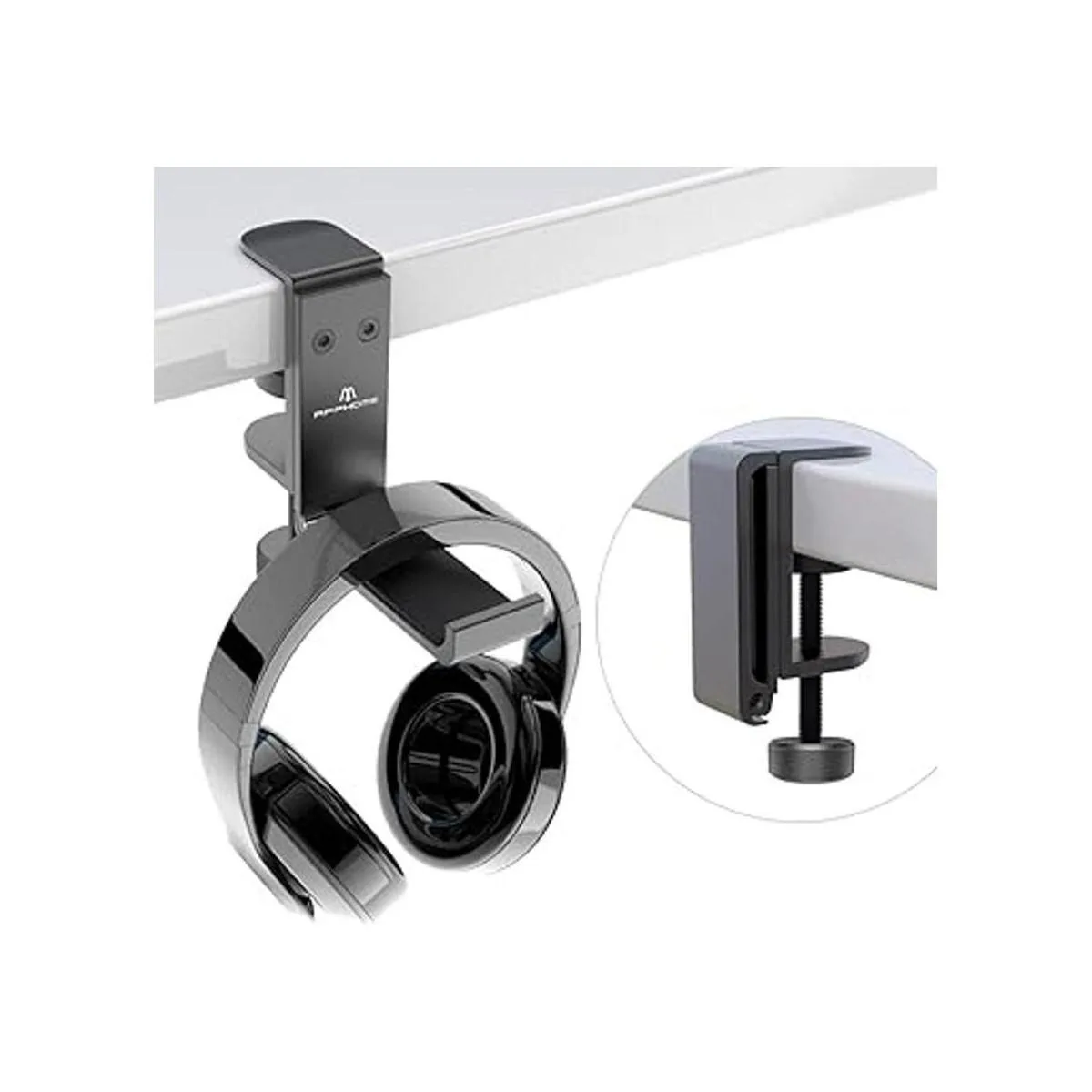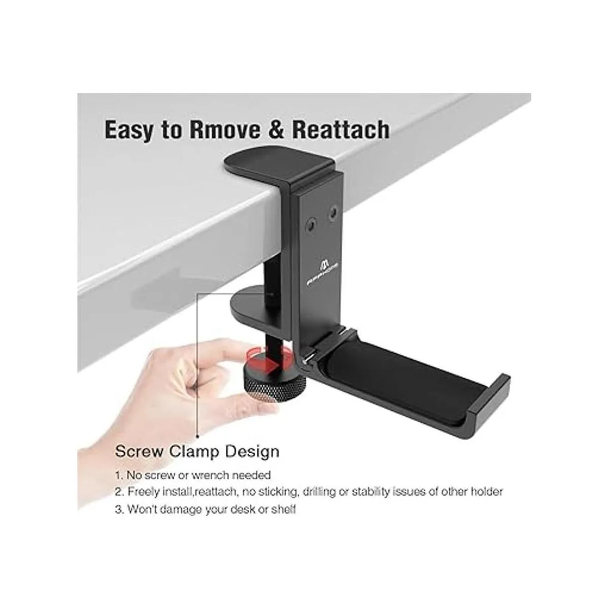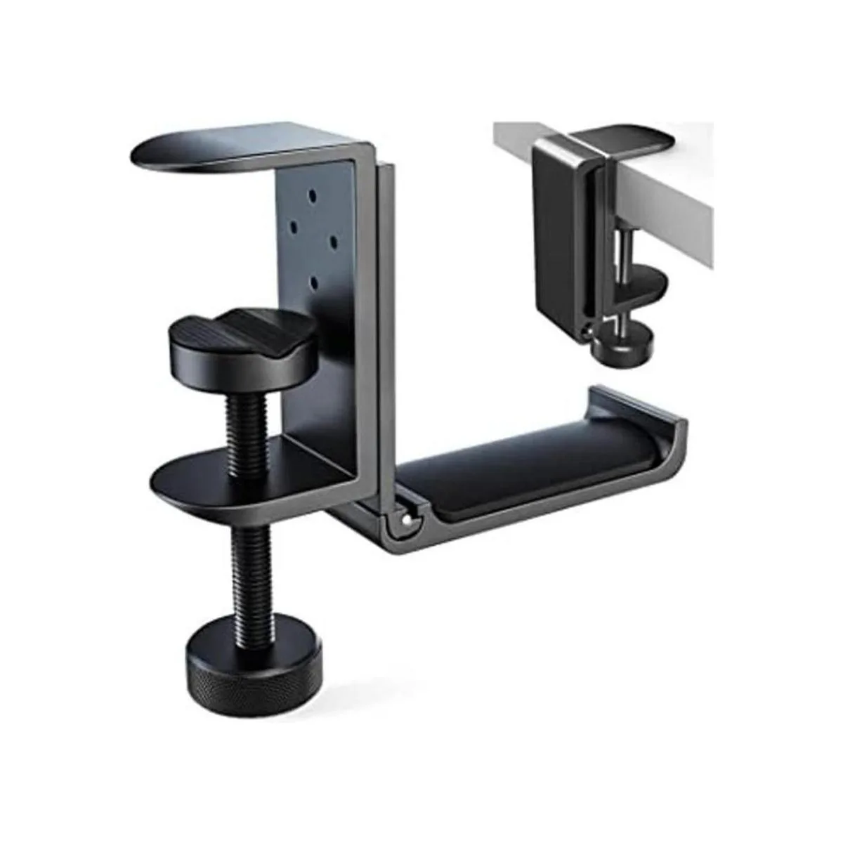 Percha para auriculares debajo del escritorio: se sujeta a escritorios de hasta 1.772 in de grosor y tan estrecha como 0.197 in para un ajuste casi universal en la mayoría de escritorios.