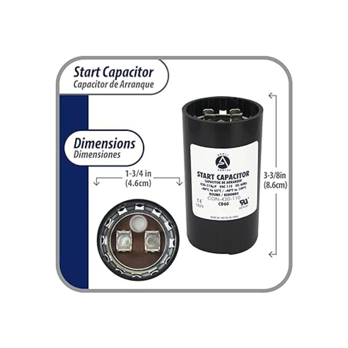 Appli Parts Condensador de arranque del motor 430516 Mfd microfarados uF 110125 VCA ajuste universal para aplicaciones de motores eléctricos de 134 pulgadas de ancho 338 pulgadas de altura CON430110