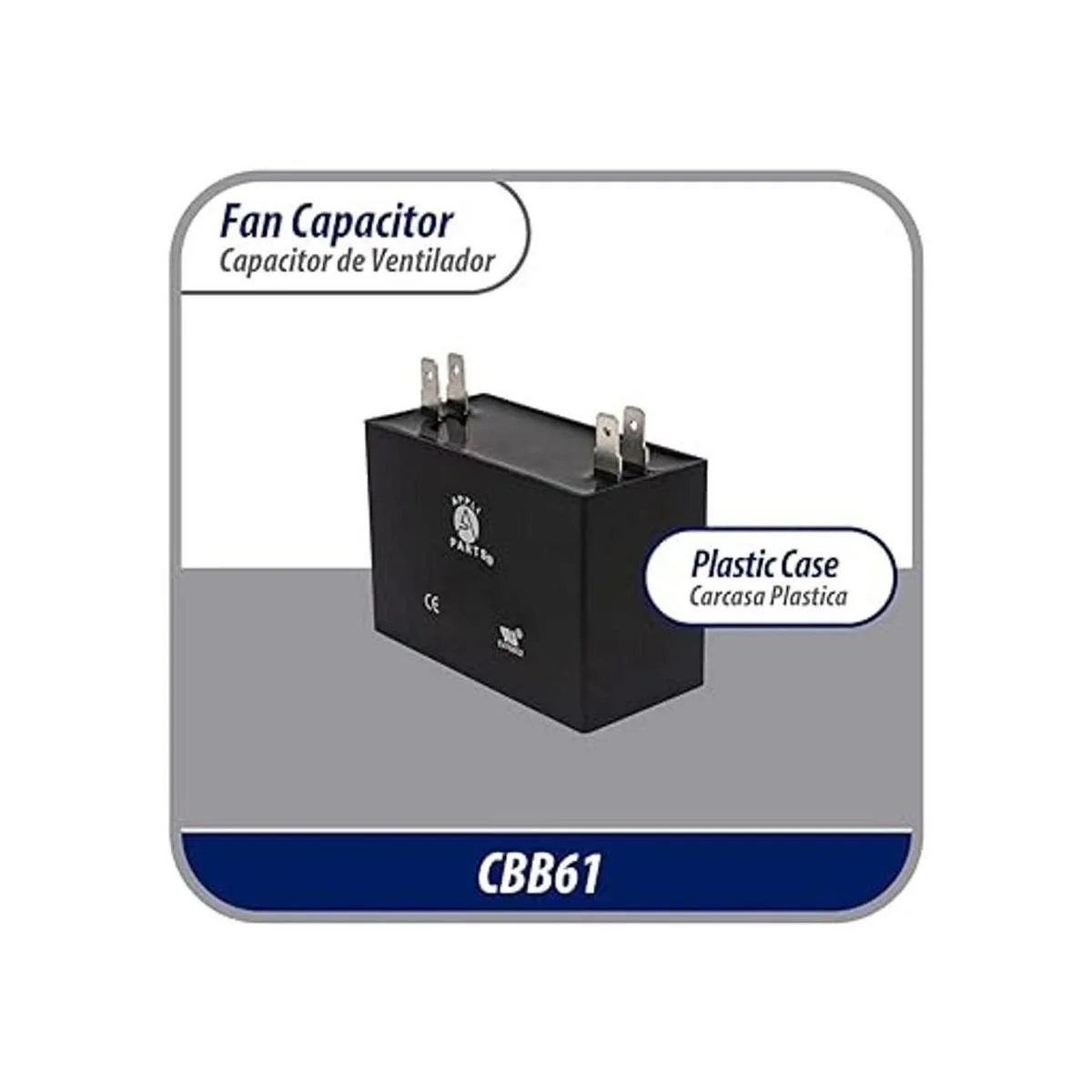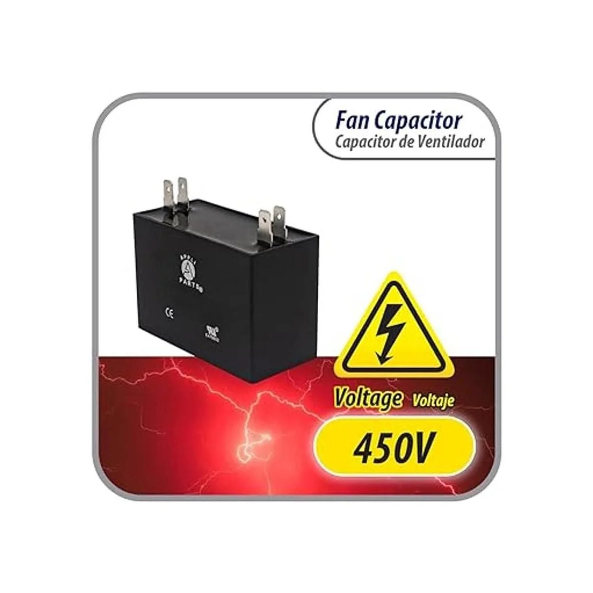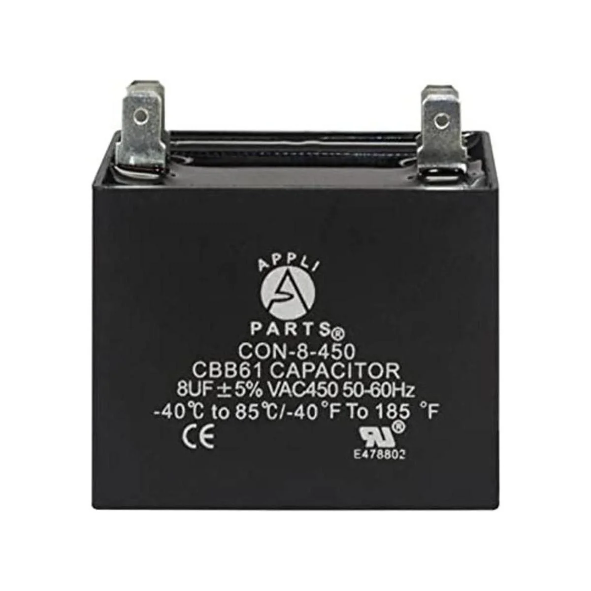 Appli Parts Condensador de ventilador de 8 mfd microfaradios uf 450 VCA 4 conexiones de terminales compatibles con cualquier marca dentro del mismo rango de capacitancia de 178 pulgadas de ancho, 1 pulgada de profundidad, 178 pulgadas de altura, CAP8450