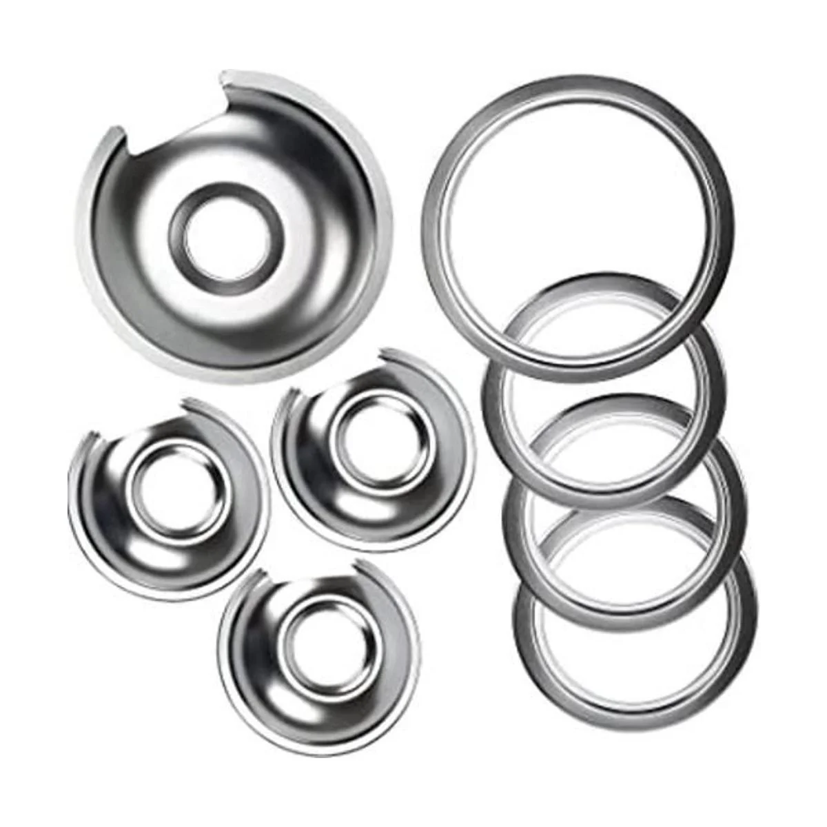 Contenido del paquete Paquete combinado: 3 bandejas de goteo pequeñas y 1 grande de 8 pulgadas WB32X10013 con 1 anillo de borde cromado de gama eléctrica WB31X5014 de 8 pulgadas WB32X10012 de 6 pulgadas con 3 x 6 pulgadas WB31X5 pulgadas WB31X5 013 Burbujas Anillo de moldura cromado, total de 8 piezas, sartenes de goteo para quemador y anillo de moldura en el paquete