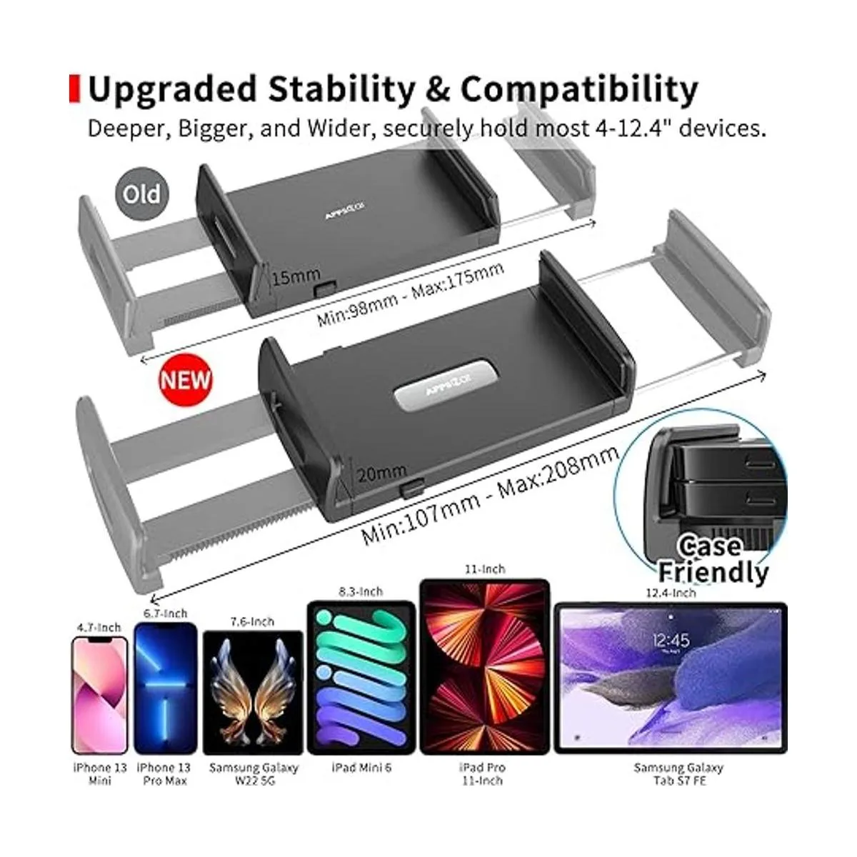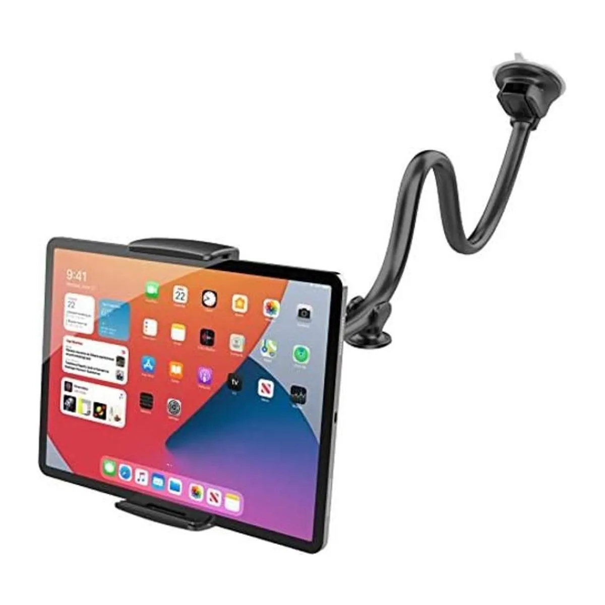 APPS2Car Soporte de auto para tablets o celulares de 7 a 11 pulgadas, para colocar en el parabrisas con ventosa y brazo flexible de 13 pulgadas