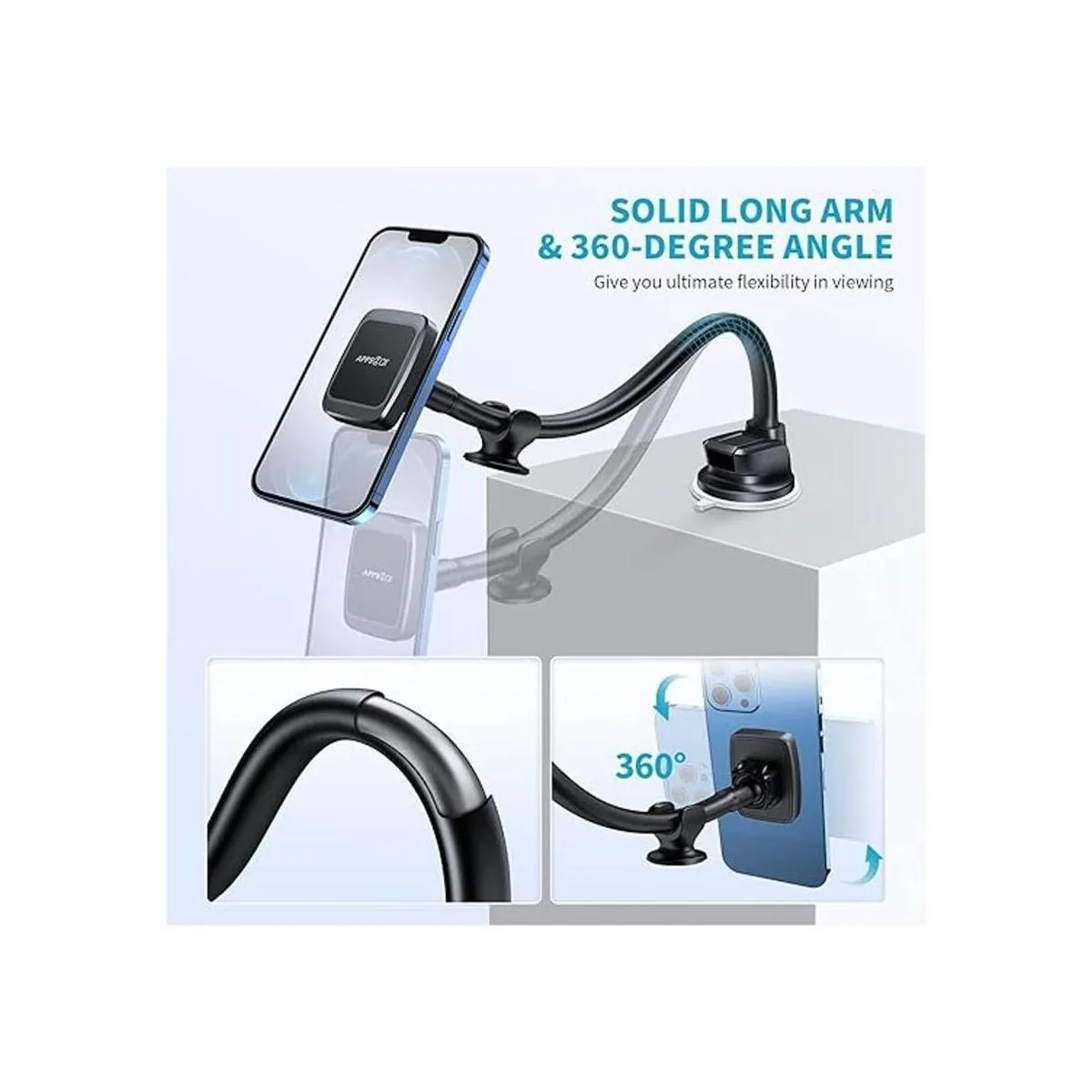 APPS2Car Soporte magnético para teléfono de automóvil con brazo largo flexible de 13 pulgadas y 6 imanes fuertes, soporte para teléfono celular antivibración para salpicadero de parabrisas de automóvil, soporte de automóvil fuerte succión para iPhone Smartphones