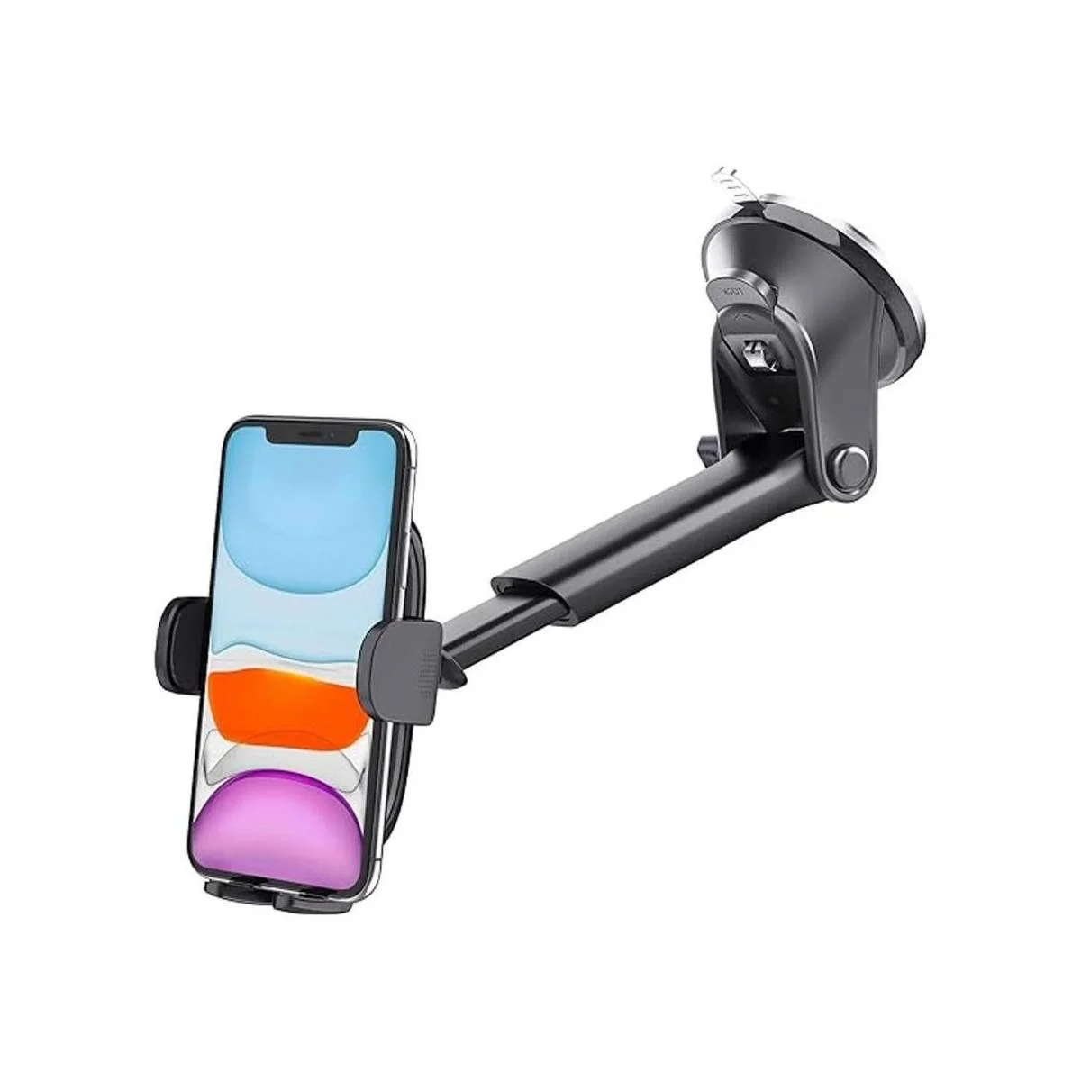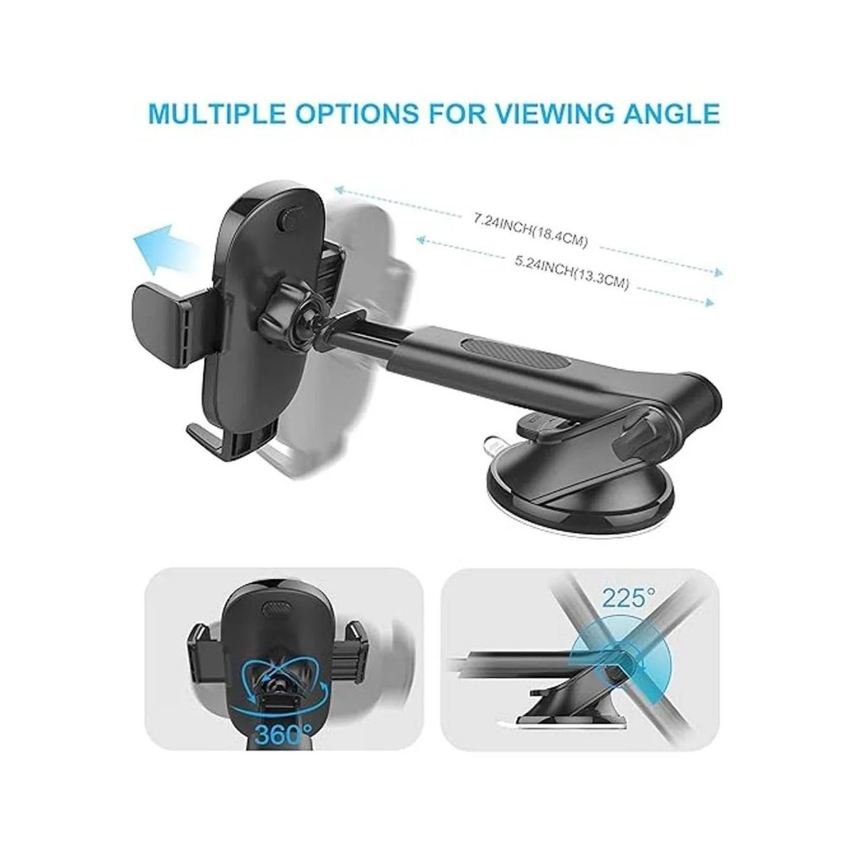 Brazo telescópico ajustable: el soporte de teléfono para coche se puede extender de 5.2 a 7.2 pulgadas y girar hacia arriba y hacia abajo en 225 grados para las posiciones más favorables, ya sea montado en el salpicadero o parabrisas; el teléfono se puede girar a orientaciones horizontales y verticales; evita que bloquee tu visión mientras conduces