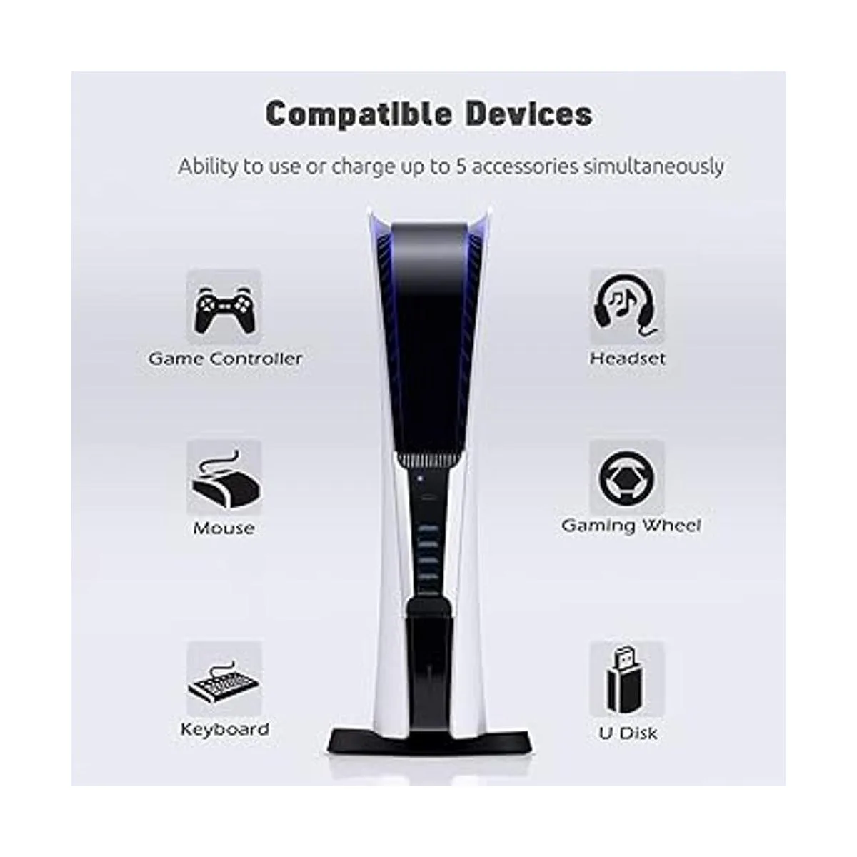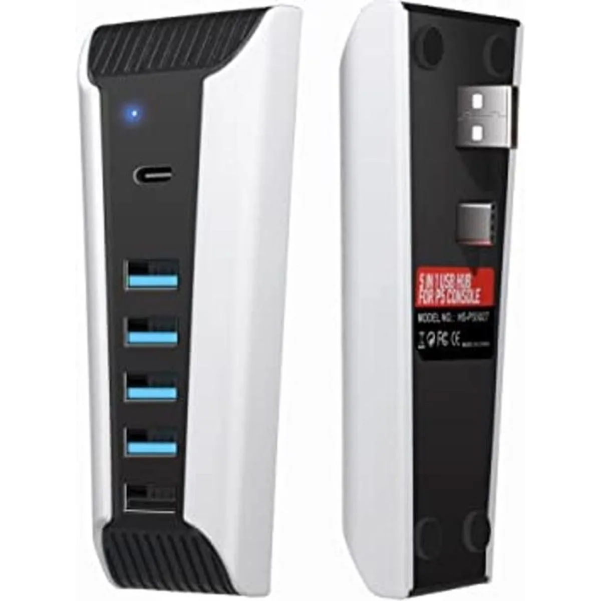 AQIDAP Concentrador USB de 5 puertos para PS5, cargador USB de concentrador de expansión de alta velocidad, extensor USB compatible con consola de juegos Playstation 5 con 4 USB 1 puerto de carga USB 1 puerto tipo C