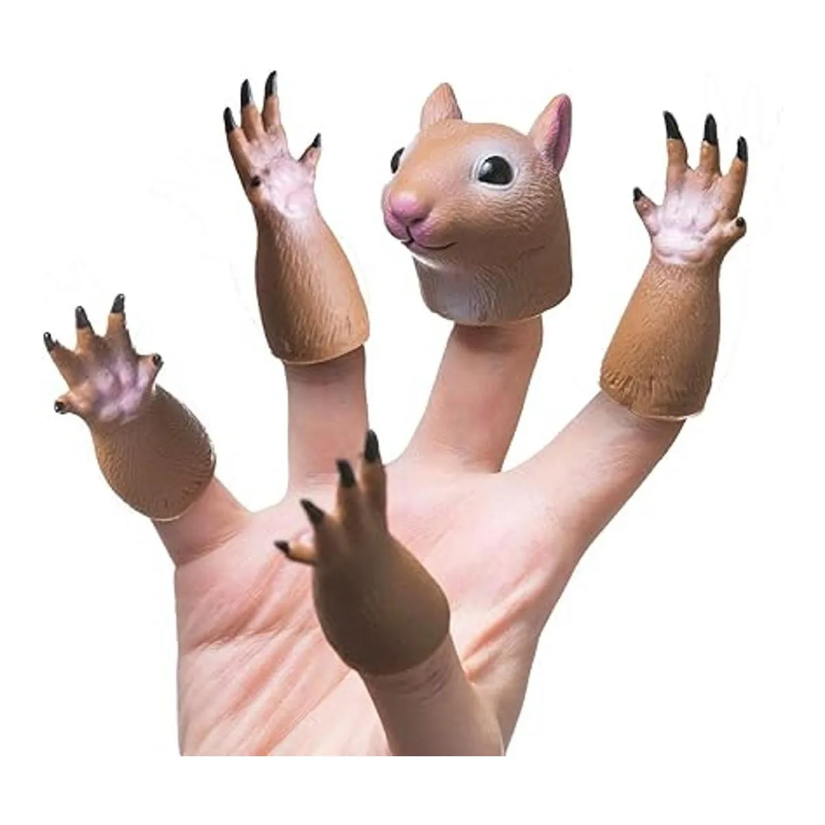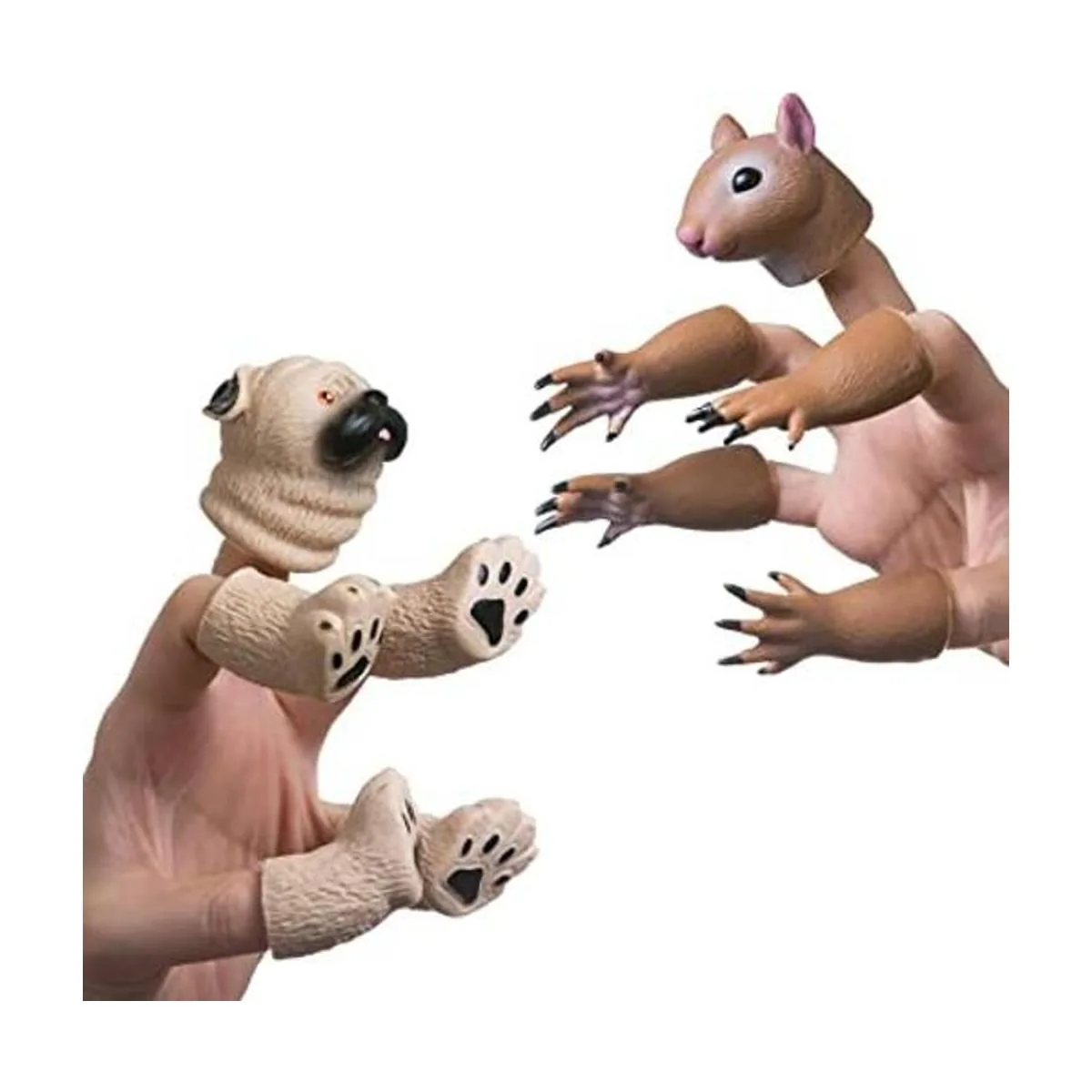 El juego de marionetas de dedo incluye un conjunto de muñecas de ardilla y un conjunto de muñecas de perro pug. Tamaño de dedo adecuado para niños y adultos.