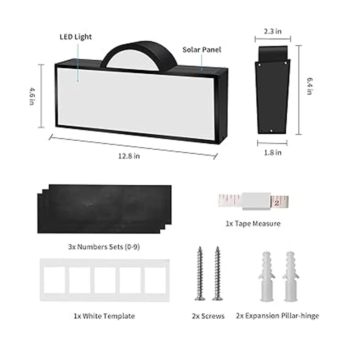 Fácil de instalar y números claros: todo lo que necesitas hacer es taladrar dos agujeros para la instalación, simplemente asegúrate de que el panel solar esté frente a la luz solar. No más visitantes, conductores o repartidores dislocados a tu casa con esta señal de dirección. Incluye: 3 juegos de números 0 9 y 1 plantillas alineadas 5 dígitos.