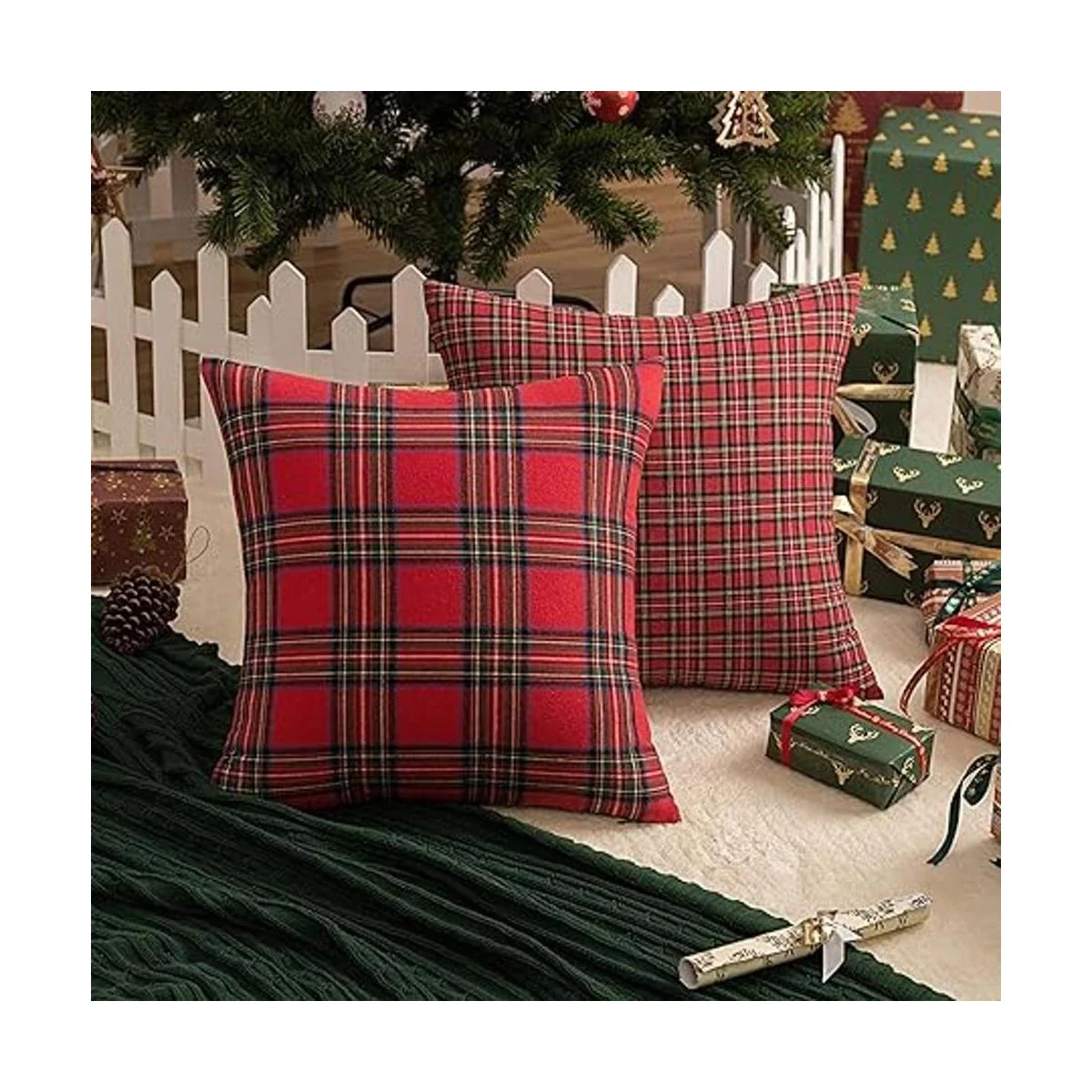 AQOTHES Paquete de 2 fundas de almohada decorativas a cuadros de Navidad, fundas de cojín de tartán escocés para decoración de casa de campo, decoración de vacaciones, rojo y verde, 20 x 20 pulgadas