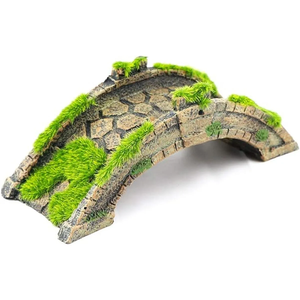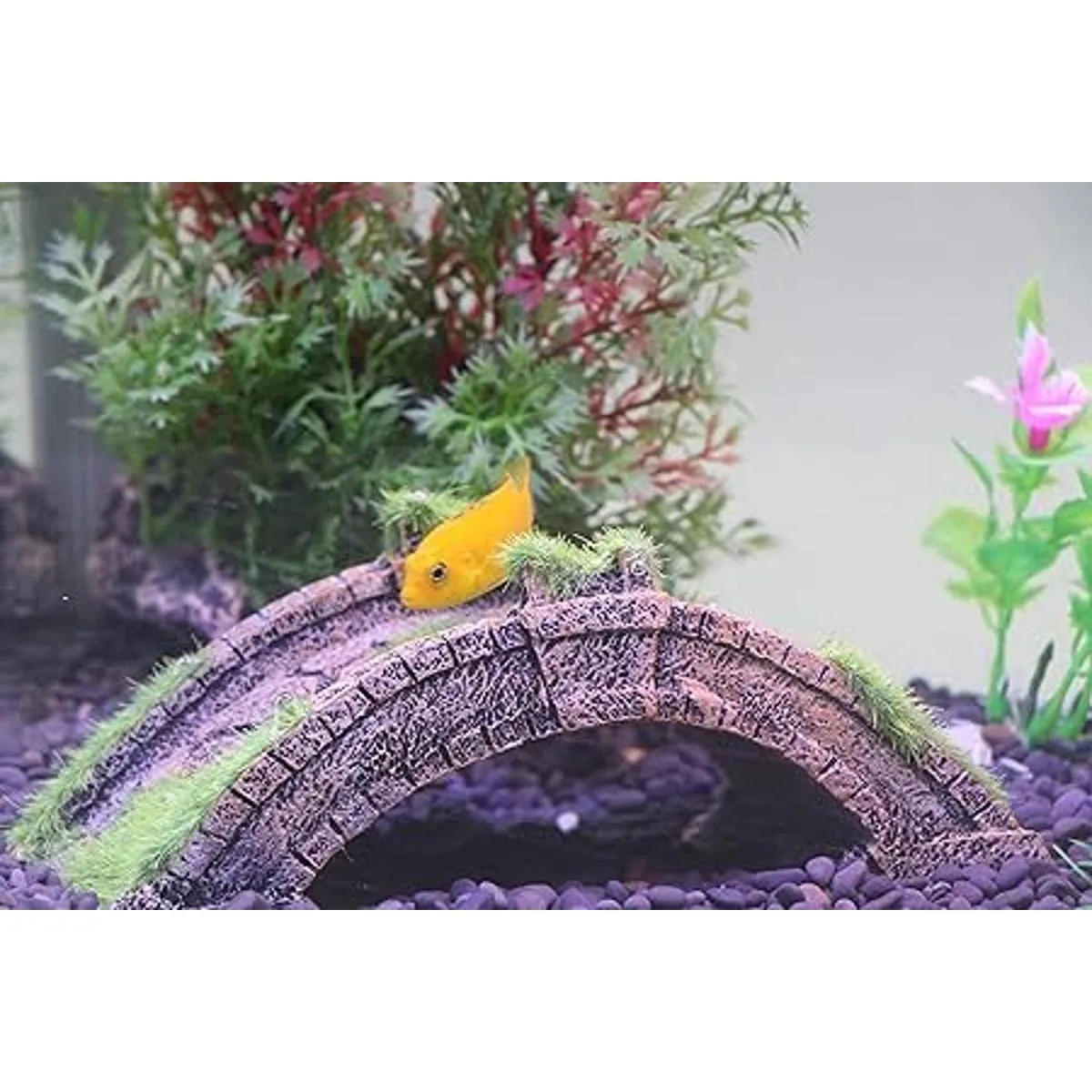 Puente con hierba decorar en la superficie puede mejorar todo el paisaje del acuario Tamaño de la decoración del puente de arco del acuario: 6.2 x 2.4 x 1.9 pulgadas largo x ancho x alto, el paquete incluye 1 adorno para puente de pecera.